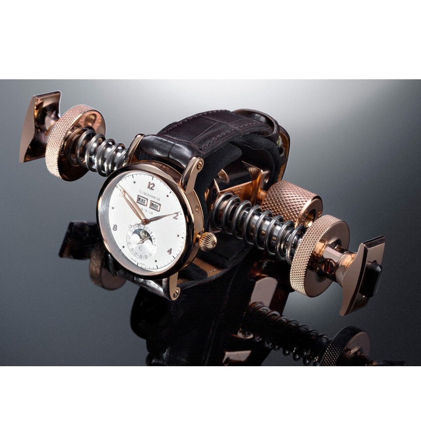 ОписаниеЧрезвычайно точный инструмент, в котором реализован механизм завода часов, осуществляющий вращения в любом направлении, включая поворот на 360°, который точнее всего имитирует ношение наручных часов на запястье. Это само по себе делает Gyrowinder примечательным среди стандартных автоматических заводчиков часов, которые поворачивают часы только по оси Х, либо слева направо, либо справа налево. Уникальным Gyrowinder также делает большой набор параметров настройки: например, так как все часы имеют разный вес, устройство поставляется с набором противовесов, позволяющих сбалансировать любые часы. Кроме того, для установки в оптимальное положение Gyrowinder оборудован интегрированным уровнем, а также тремя регулируемыми ножками. Визуально Gyrowinder напоминает богатую традицию морских навигационных приборов с их карданными подвесами и абсолютно изысканными материалами, которые сделаны навека. Однако источник вдохновения для Gyrowinder имеет мало общего с морским романтизмом. ДоставкаСтоимость доставки по Москве в пределах МКАД: при заказе от 20 000 рублей бесплатно, менее 20000 руб - 1200 рублей Доставка возможна на 15.12.2025 или на 16.12.2025 Доставка по РФ и СНГ: по тарифам транспортных компаний Стоимость разгрузки: нет данных СамовывозСамовывоз: со склада, после после подтверждения заказа ОплатаОплата: наличными при получении товара, безналичный расчет ( 100% предоплата) Автоматический подзавод для часов Doettling Gyrowinder |