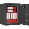 пройдены испытания на огнестойкость класса S60P и получен сертификат по евростандарту EN 1047-1 – это означает защиту бумажных носителей от огня в течение как минимум часа при температуре в помещении до 1000°C