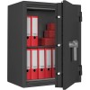 пройдены испытания на огнестойкость класса S60P и получен сертификат по евростандарту EN 1047-1 – это означает защиту бумажных носителей от огня в течение как минимум часа при температуре в помещении до 1000°C