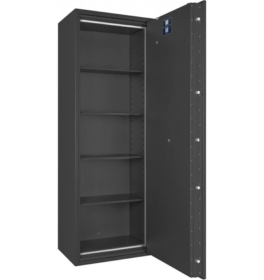 На дверь данной модели установлена трёхлучевая ручка серебристого цвета и электронный высокосекретный замок LA GARD ComboGard 39E производства США.