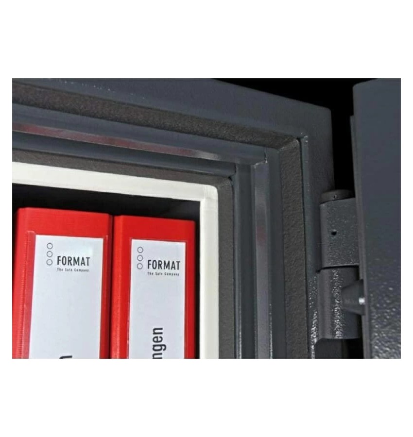 пройдены испытания на огнестойкость класса S60P и получен сертификат по евростандарту EN 1047-1 – это означает защиту бумажных носителей от огня в течение как минимум часа при температуре в помещении до 1000°C.