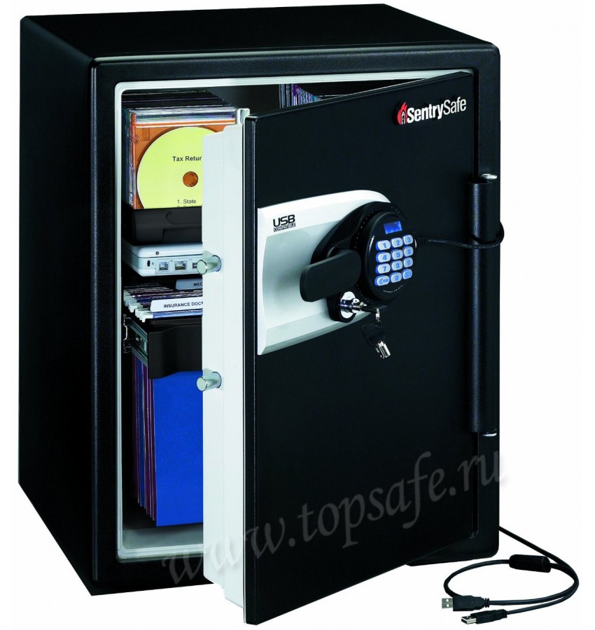 Огнестойкий сейф SentrySafe QE5541- первый и единственный в мире ОгнеВодостойкий сейф для хранения данных. Обеспечивает безопасное Хранение и Питание HD от порта USB подключения. Позволяет создавать резервные копии данных, используя свои 2 1/2 " устройства хранения данных. Защищает до 72 компакт-дисков и DVD. Пользователи могут подключать ноутбук или настольный через внешний порт USB.