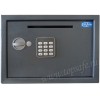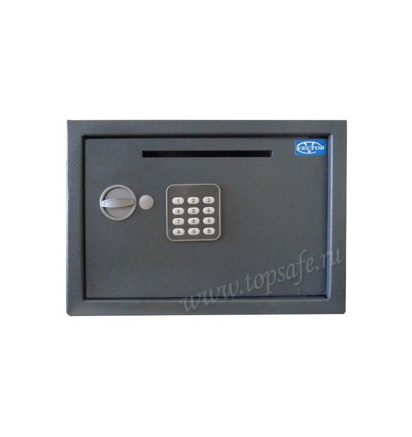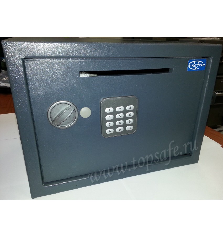ОписаниеНебольшой депозитный сейф Vector SFT-25D предназначен для использования в офисе, торговой точке, складском помещении или в бухгалтерии. Укомплектован электронным кодовым и ключевым (аварийным) замками. Имеет систему защиты от подбора кода, а также звуковое и световое оповещения. Питание замка осуществляется от 4 батареек типа АА.