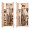 Полностью удовлетворяют требованиям МВД РФ и Росгвардии к хранению оружия для физических и юридических лиц. Сейф имеет гигиенически безопасное износо- и коррозионно-устойчивое полимерно-порошковое покрытие на основе материалов производства Италии и Франции. Имеются покрытия различных цветов и структур: металлики, антики и д.р. Модель имеет полную внутреннюю мягкую отделку искусственной кожей. Полная внутренняя мягкая отделка защищает Ваше оружие от контакта с металлом, царапин, повреждений и т.п. Искусственная кожа имитирует кожу крокодилов, змей различных цветов! Замок Сейф оборудован двумя сертифицированными ключевыми замками: пятиригельный замок 4-го класса!!! повышенной секретности (1,5 миллиона комбинаций) и взломостойкости плюс трёхригельный замок 3 класса. Замки произведены совместно с Cisa (Италия). По желанию заказчика возможна поставка сейфов с замками производства Германии: Mauer или Wittkopp. Сейф имеет две мощные вертикальные (для каждой двери) и горизонтальную ригельные системы с запиранием по всем сторонам. Защита Изготовлен из стали толщиной 3 и 4 мм. Петли – внутренние из стали 6мм. Двери сейфа имеют коробчатую конструкцию для дополнительного усиления. Внутреннее устройство Сейф имеет вертикальную перегородку, которая делит внутреннее пространство на две области – широкую и узкую. Внутри широкой области: 2 съёмные длинные полки с регулируемой высотой установки, деревянные ложементы на 6 стволов, съёмный регулируемый роликовый ложемент-зажим (производства Германии) для хранения в широкой области 7-го ствола либо для дополнительной фиксации оружия с оптикой. Внутри узкой области: четыре съёмные полки с регулируемой высотой установки, деревянные ложементы на 2 ствола а так же запираемое (патронное) отделение с съёмной полкой внутри. По желанию заказчика возможна поставка с дополнительными полками. Ружья можно хранить как в широком, так и в узком отделениях сейфа. На внутренней поверхности одной из дверей сейфа имеются три держателя для хранения ножей и пр. Сейф дополнительно может быть укомплектован пистолетными ложементами (деревянными либо пластиковыми). Установка Предусмотрена возможность крепления сейфа к стене. По желанию заказчика возможна поставка в исполнении, предусматривающем также крепление и к полу. Модификации В зависимости от типа внутренней отделки имеются три модификации этих оружейных сейфов. Модификация Primary имеет деревянные ложементы либо деревянные ложементы отделанные искусственной кожей. Модификация Lux имеет дополнительно мягкую полную внутреннюю отделку искусственной кожей. Различные варианты искусственной кожи по нашему каталогу. Некоторые варианты искусственной кожи представлены на дополнительном фото. Модификация Lux имеет дополнительную мягкую полную внутреннюю отделку бархатом или искусственной кожей. Различные варианты цвета бархата и искусственной кожи по нашему каталогу. Модификация Flock имеет полную внутреннюю мягкую отделку флокированием бархатом (различных цветов по нашему каталогу), а также другие (премиум) ложементы. Полная внутренняя мягкая отделка защищает Ваше оружие от контакта с металлом, царапин, повреждений и т.п. На фотографиях в открытом виде приведён пример сейфа, выполненного в модификации LUX. New! Поступила искусственная кожа, имитирующая кожу крокод