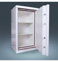 Класс 3. Системы третьего уровня чаще используют на предприятиях, в обменных пунктах, где часто хранятся крупные суммы наличных, важная документация, ценные бумаги. Стенки таких моделей в толщину достигают 50-70 мм, они многослойные, в них используется сталь толщиной до 18 мм и бетонное наполнение. Замков обычно два, класса В, с защитой от выбивания/высверливания, их дополняет ригельная блокировочная система. Такие сейфы можно устанавливать в помещениях без охраны, вскрыть их болгаркой практически невозможно.