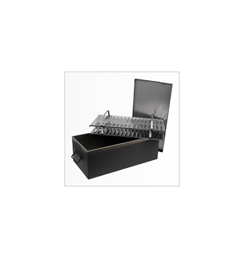 Основной особенностью данного изделия являются специально разработанные конвекционные отверстия в решетке, обеспечивающие равномерный процесс копчения и исключающие пригорание продукта к решетке.