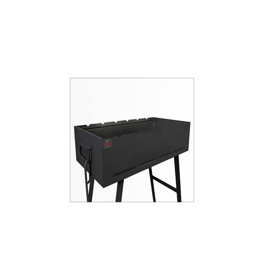 Мангал изготовлен из жаропрочной котловой стали 17ГС толщиной 1,2 мм. Имеет ребра жесткости, придающие конструкции дополнительную прочность.