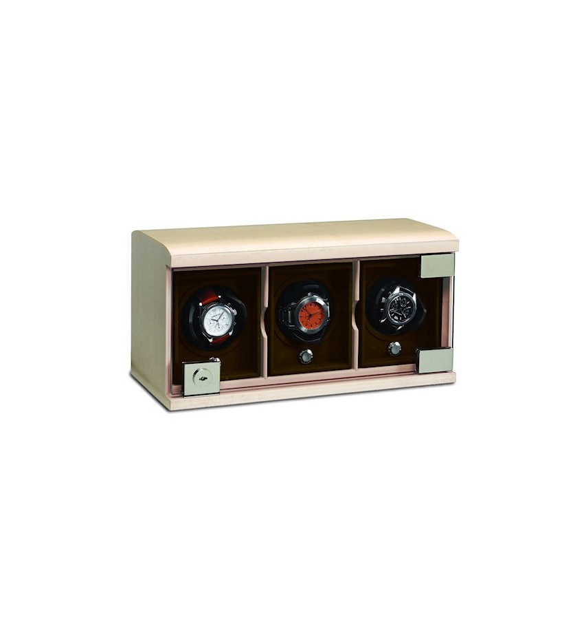 ОписаниеМодуль на трое часов. Модуль для подзавода наручных механических часов, в которых предусмотрена автоматическая система подзавода. Модуль обеспечивает непрерывный процесс подзавода часов при длительном отсутствии владельца, что позволяет сохранять установленные настройки календарей и всех предусмотренных функций часов. Это особенно важно для сложных механических часов с использованием вечных календарей. В некоторых случаях при остановке сложных часов требуется иногда не просто вмешательство часовщиков, но и отсылка их на фирму – изготовитель. Безусловно, данная проблема актуальна для людей, имеющих несколько часов "на все случаи жизни". Модули могут работать как от сети, так и от обычных батареек. В комплект входит также и транспортировочный футляр на одни часы, изготовленный из высококачественной кожи