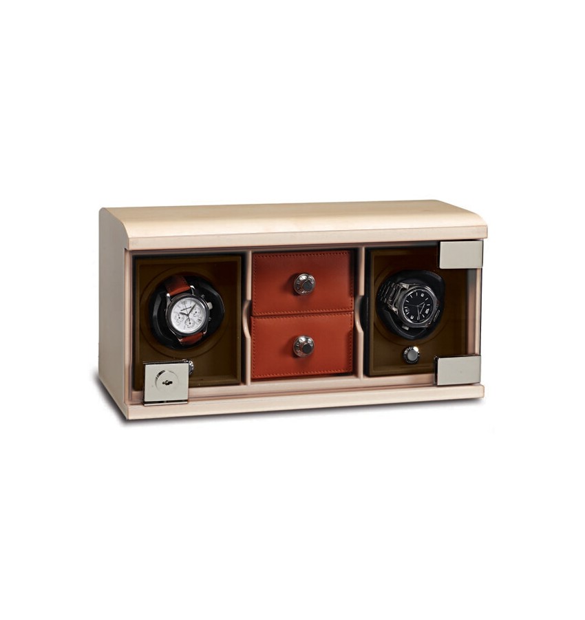 ОписаниеМодуль для подзавода 2 наручных механических часов, в которых предусмотрена автоматическая система подзавода. Модуль обеспечивает непрерывный процесс подзавода часов при длительном отсутствии владельца, что позволяет сохранять установленные настройки календарей и всех предусмотренных функций часов. Это особенно важно для сложных механических часов с использованием вечных календарей. В некоторых случаях при остановке сложных часов требуется иногда не просто вмешательство часовщиков, но и отсылка их на фирму – изготовитель. Безусловно, данная проблема актуальна для людей, имеющих несколько часов "на все случаи жизни". Модули могут работать как от сети, так и от обычных батареек. Материал: дерево ценных пород.