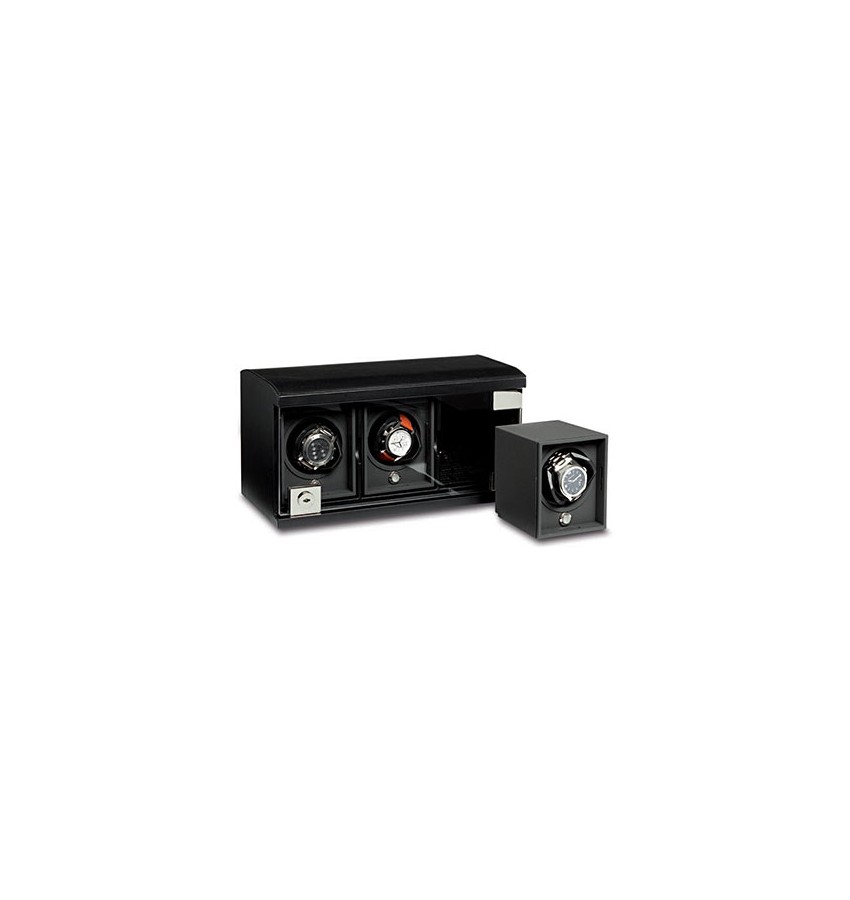 ОписаниеМодуль на трое часов, отделка чёрной кожей. Модуль для подзавода наручных механических часов, в которых предусмотрена автоматическая система подзавода. Модуль обеспечивает непрерывный процесс подзавода часов при длительном отсутствии владельца, что позволяет сохранять установленные настройки календарей и всех предусмотренных функций часов. Это особенно важно для сложных механических часов с использованием вечных календарей. В некоторых случаях при остановке сложных часов требуется иногда не просто вмешательство часовщиков, но и отсылка их на фирму – изготовитель. Безусловно, данная проблема актуальна для людей, имеющих несколько часов "на все случаи жизни". Модули могут работать как от сети, так и от обычных батареек. В комплект входит также и транспортировочный футляр на одни часы, изготовленный из высококачественной кожи.