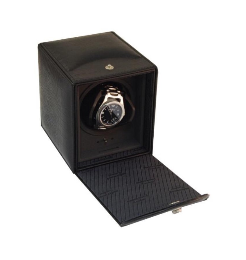 ОписаниеШкатулка для хранения часов с автоматическим заводом, с возможностью легкой транспортировки. Корпус модуля: высокотехнологичный композитный материал. • Внешняя отделка- черный кожаный футляр. • Внутренняя отделка: материал - высокотехнологичный композитный материал; цвет - графитовый. Очевидно, что внутри любого качественного механизма подзавода часов должен находиться технологический совершенный "двигатель". Именно поэтому для своих первоклассных систем подзавода компания Underwood использует механизмы швейцарской компании Мaxon motor, одного из мировых лидеров в производстве механизмов этого типа. Все системы подзавода снабжены высококачественным механизмом Мaxon A-max DC, характерной чертой для каждого из которых является наличие постоянных магнитов. Внутри каждого Мaxonа находится запатентованный во всем мире ротор "the System maxon®", не содержащий железа. Концепция этого вида механизма обладает множеством специфических технических преимуществ, которые в продукции компании Underwood выражаются в тихой (почти бесшумной) работе и высокоэффективном функционировании при низком потреблении энергии. Модуль будет вращаться 30 минут по часовой стрелке, 30 минут против, а затем остановится на 3 часа, после чего цикл повторится. Модули работают как от сети, так и от обычных батареек.