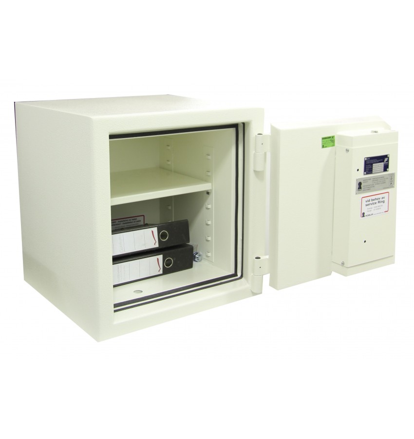 ОписаниеROBUR (Швеция) является ведущим производителем в Европе и поставщиком сейфов по всему миру,а также банковских хранилищ, дверей и специализированных комнат. Сейф окрашен гигиенически безопасной и износоустойчивой краской. Цвет RAL 9010. Производитель настоятельно рекомендует, для создания проблем злоумышленникам, крепить сейф. Сейф оснащен двойным огнестойким контуром, который проходит по корпусу, в случае пожара, контур нагревается и препятствует поступлению жара внутрь сейфа, тем самым защищая содержимое. Есть вывод под сигнализацию, что дает возможность подключить к службам быстрого реагирования (Дельта,Гольфстрим и т.д). В сейфе установлен высокосекретный, надёжный ключевой замок шведского производства FAS, сертифицирован VDS ( Германия ) - grade B, что соответствует защите от взлома 2 евро классу и российскому ГОСТу 3 класса.