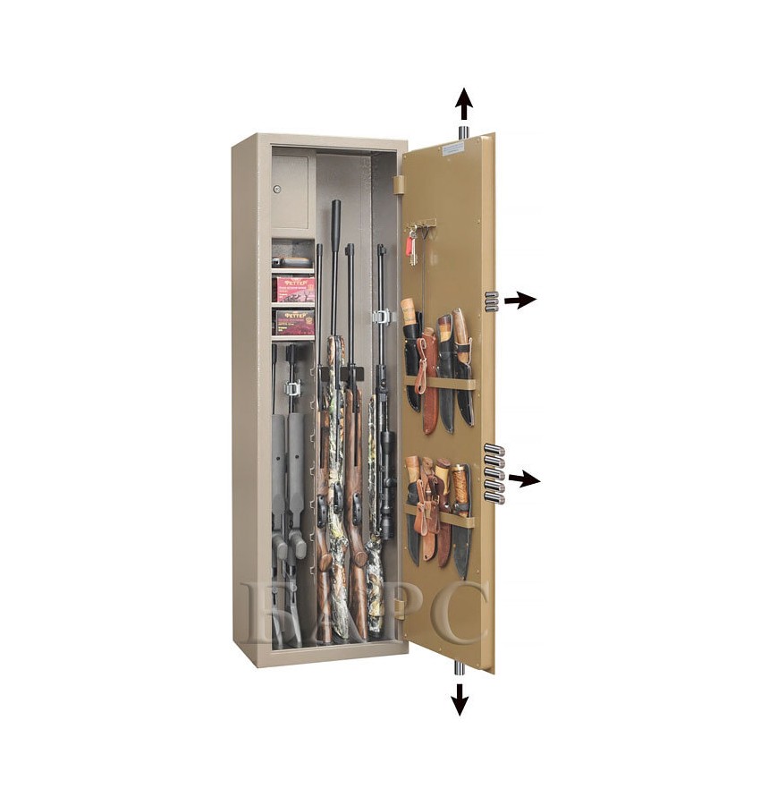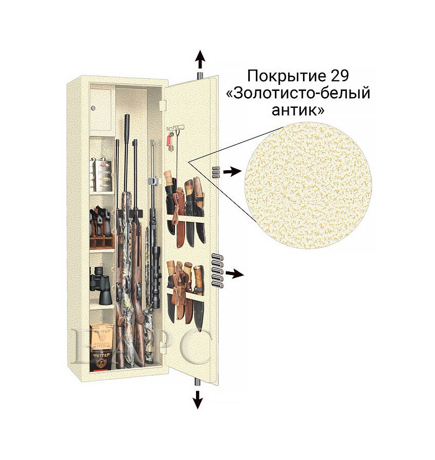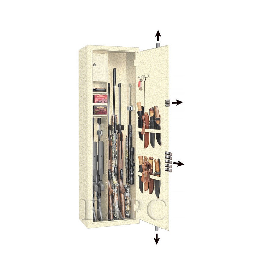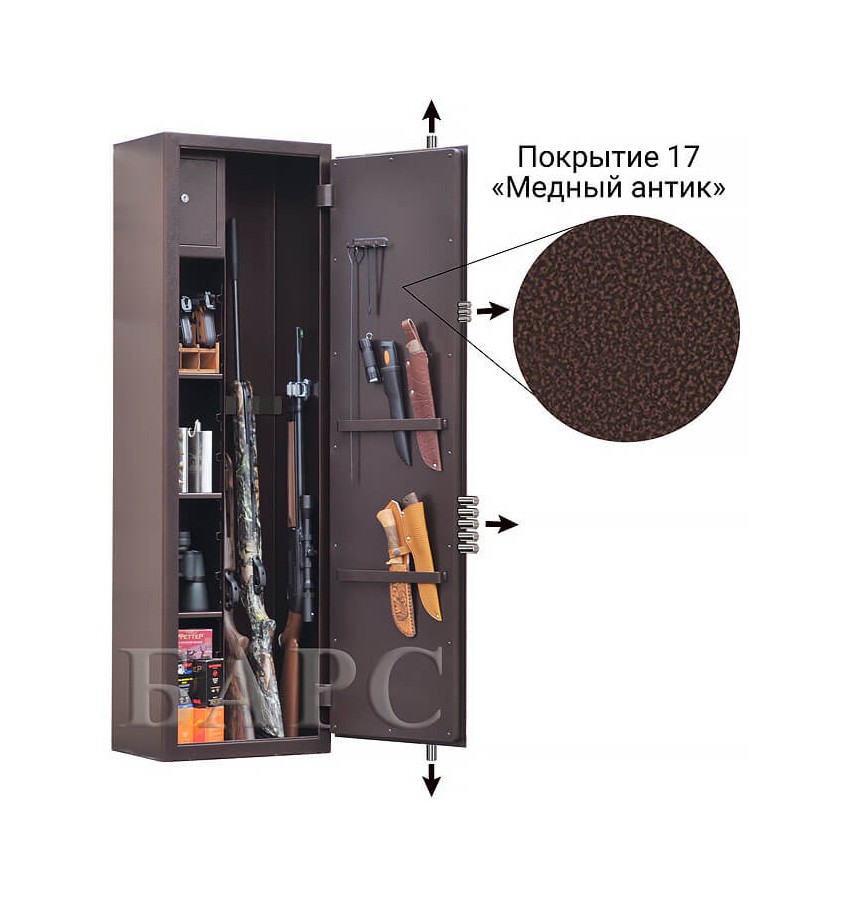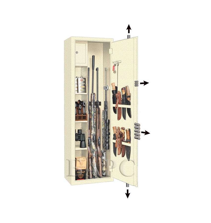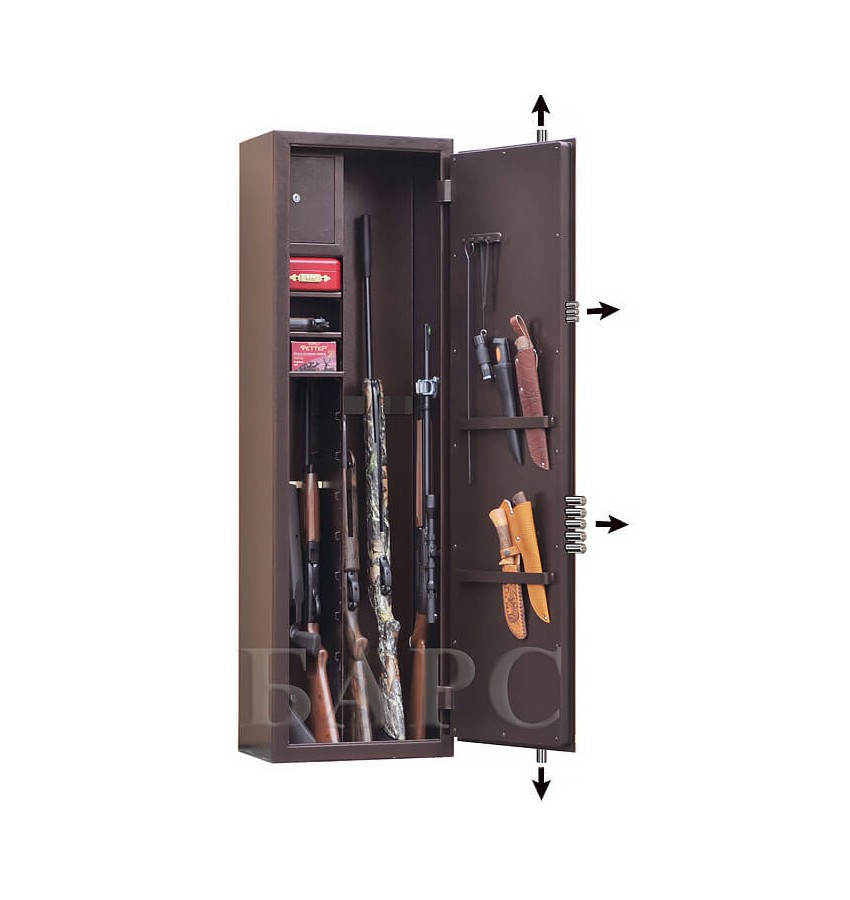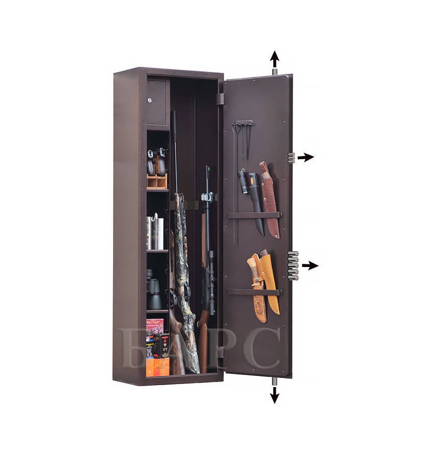 ОписаниеПолностью удовлетворяет требованиям МВД к хранению оружия физическими и юридическими лицами. Сейф имеет коррозионно- и износо-стойкое, гигиенически-безопасное полимерно-порошковое покрытие на основе материалов производства Италии. Замок Сейф оборудован двумя сертифицированными ключевыми замками: пятиригельный замок 4-го класса!!! повышенной секретности и взломостойкости, замок разработан Cisa (Италия) плюс трёхригельный замок 2 класса. Также сейф оборудован вертикальной ригельной системой с запиранием по всем сторонам. Защита Изготовлен из стали толщиной 3 мм. Дверь имеет коробчатую конструкцию для дополнительного усиления. Петли-внутренние из стали 6мм. Внутреннее устройство Запираемое (патронное) отделение и 3 съемные регулируемые по высоте полки. Ружья можно хранить как по одну сторону от перегородки, так и по обе стороны от перегородки. Установка Предусмотрена возможность крепления сейфа к стене и к полу. Модификации Возможна комплектация этого сейфа и дополнительными ложементами, каждый из которых легко устанавливается в нужное место. Имеются полимерные ложементы, деревянные ложементы на любое количество стволов, роликовые ложементы-зажимы производства Германии и другие. Уточните это при заказе с Вашим менеджером ДоставкаСтоимость доставки по Москве в пределах МКАД: при заказе от 20 000 рублей бесплатно, менее 20000 руб - 1200 рублей Доставка возможна на 06.12.2025 или на 07.12.2025 Доставка по РФ и СНГ: по тарифам транспортных компаний Стоимость разгрузки: 900 руб СамовывозСамовывоз: со склада, после после подтверждения заказа ОплатаОплата: наличными при получении товара, безналичный расчет ( 100% предоплата) Оружейный сейф БАРС |