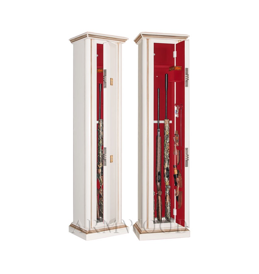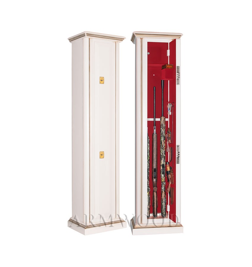 Элитный оружейный сейф с отделкой натуральным деревом. Окрашенное дерево (по каталогу RAL) с патинированием. Сейфы полностью удовлетворяют требованиям МВД к хранению оружия. Замок Два сертифицированных трёхригельных ключевых замка 3 класса. Замки разработаны совместно с Cisa (Италия). По желанию заказчика возможна поставка сейфов с замками производства Германии: Mauer или Wittkopp. Защита Дверь сейфа имеет коробчатую конструкцию для дополнительного усиления. Петли внутренние из стали 6мм. Усиленный корпус. Внутреннее устройство Внутри сейфа запираемое (патронное) отделение и деревянные ложементы. Дополнительно возможно - съёмные полки. На внутренней поверхности двери сейфа имеется лоток, удобные крючки и два держателя для хранения ножей и пр. Внутренняя отделка Сейфы ARMWOOD модификации FLOCK имеют престижную полную внутреннюю мягкую отделку флокированием бархатом (различных цветов по нашему каталогу), например на фото – флок бордо. Полная внутренняя мягкая отделка защищает Ваше оружие от контакта с металлом, царапин повреждений и т.п. Некоторые варианты флока представлены на дополнительном фото. Установка Предусмотрена возможность крепления сейфа к стене. По желанию заказчика возможна поставка в исполнении, предусматривающем также крепление к полу. Модификации В зависимости от типа внутренней отделки имеются четыре модификации этих оружейных сейфов. Модификация Primary(базовая) имеет деревянные ложементы отделанные винилискожей либо ложементы «премиум». Модификации Lux и Lux+ имеют дополнительно к базовой - мягкую полную внутреннюю отделку винилискожей. Различные варианты цвета винилискожи по нашему каталогу. New! Поступила винилискожа, имитирующая кожу крокодилов, змей и т.п. Тоже различных цветов! Модификация Lux+ отличается от модификации Lux следующим: дополнительная отделка фасада внутреннего запираемого отделения деревом. Модификация Flock имеет полную внутреннюю отделку флокированием бархатом (различных цветов по нашему каталогу) и ложементы «премиум». На фотографиях в открытом виде представлены сейфы в модификации Flock (в данном случае флок - бордо). Полная внутренняя мягкая отделка защищает Ваше оружие от контакта с металлом, царапин, повреждений и т.п. Металлические детали сейфа имеют гигиенически безопасное износо- и коррозионно-устойчивое полимерно-порошковое покрытие на основе материалов производства Италии или Франции. Имеются покрытия различных цветов и структур: металлики, антики и д.р. По желанию заказчика возможно изменение размеров, конструкции, внутреннего устройства и т.п. Возможна замена верхних деревянных ложементов на ложементы других типов (роликовые ложементы-зажимы производства Германии, специальные ложементы для хранения оружия с крупной оптикой и т.п.). Дополнительная информация Имеются различные варианты отделки натуральным деревом сейфов серии Armwood (под различную мебель). Возможна поставка данного сейфа в исполнении универсальный сейф. В этом случае сейф поставляется с дополнительными полками и может использоваться не только как оружейный сейф, но и как личный и офисный сейф. Любые сейфы Armwood могут поставляться как с традиционной деревянной отделкой, так и в исполнении окрашенное дерево с патинированием либо окрашенное дерево без патинирования