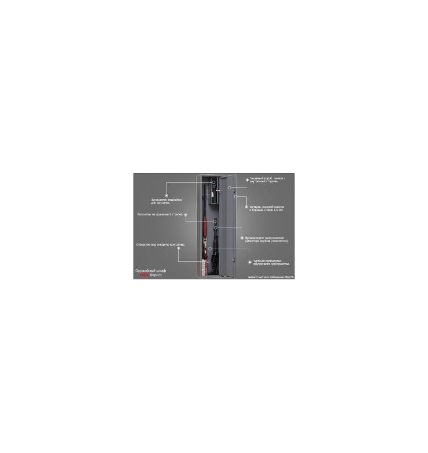 Шкаф для ружья Onix Корнет соответствует требованиям МВД РФ к хранению огнестрельного оружия.