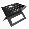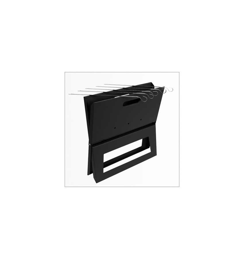 Основной особенностью данного изделия является конструкция «ноутбук», благодаря которой изделие в сложенном (походном) положении занимает минимум места и позволяет очень быстро развернуть мангал в рабочее положение.