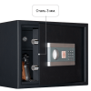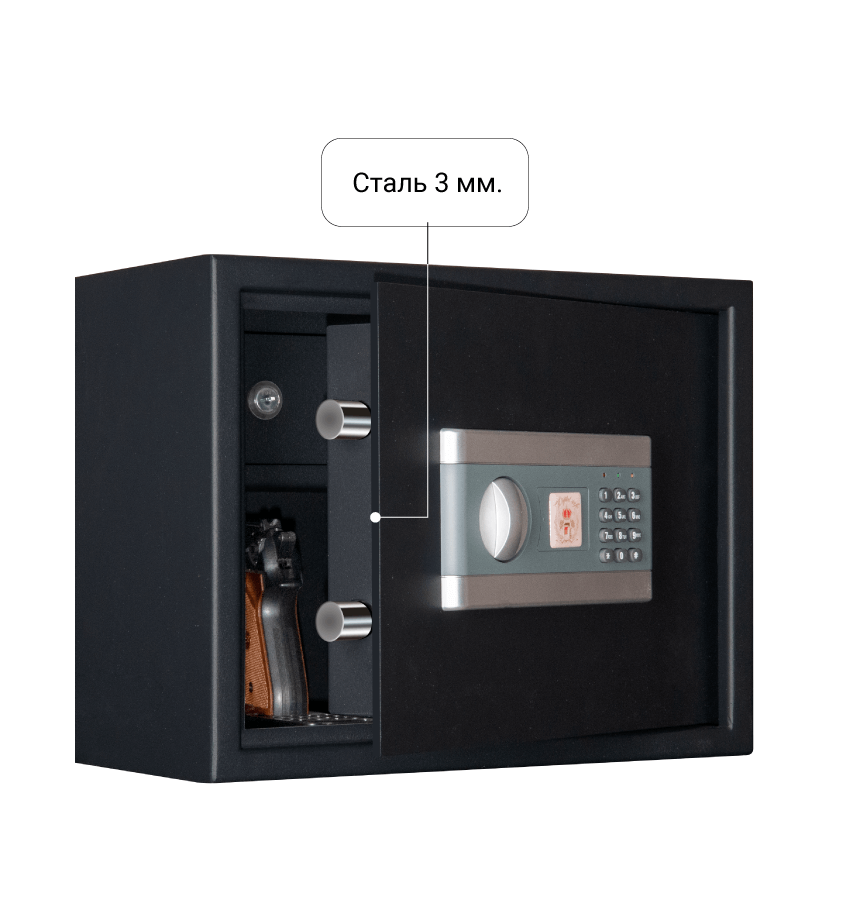 ОписаниеИмеются различные цвета. Используется в качестве мебельного, настольного, пистолетного сейфа и т.п. Удовлетворяет требованиям МВД. Сейф имеет гигиенически безопасное, износо- и коррозионно-устойчивое полимерно-порошковое покрытие. Замок Сейф оборудован высокосекретным надёжным электронным кодовым замком. Этот замок Вы можете по Вашему выбору эксплуатировать в режиме одного пользовательского кода, либо в режиме двух кодов (мастер-код и рабочий код). Оба кода устанавливает сам владелец сейфа. Длину кодовой комбинации (от трёх до восьми цифр) выбирает сам владелец сейфа. Подробная и понятная инструкция прилагается. Питание замка от стандартных батареек. Долгий срок службы батареек. Простая и удобная замена разряженных батареек. Сейф имеет систему аварийного открывания master-lock, которая позволит владельцу сейфа открыть и перепрограммировать электронный замок, если забыты установленные коды и т.п. Индивидуальные мастер-ключи входят в комплект сейфа. Электронный замок сейфа имеет светодиодную и звуковую индикацию – для ещё более удобной эксплуатации и программирования сейфа. Защита Усиленный корпус. Дверь сейфа усиленная коробчатая. Передний лист двери - сталь 3 мм. Петли - внутренние. Внутреннее устройство Внутри сейфа запираемое отделение (трейзер). Дно сейфа отделано ковролином. В сейф помещаются скоросшиватели с документами формата А4. Установка Предусмотрена возможность установки сейфа в мебель, крепления сейфа к стене, к полу, мебельной полке и т.п. Модификации Дополнительно может комплектоваться пистолетными ложементами (пластиковыми либо деревянными) а также колодками под патроны. Сейфы этой модели стандартно поставляются с различными вариантами полимерно-порошковых покрытий: эффект молотковой эмали серый (как на центральном фото), медный антик, светло-серый шагрень, а также черный дымчатый. Уточняйте при заказе - в каких цветах имеются сейфы в наличии. Ассортимент сейфов по цвету может меняться. ДоставкаСтоимость доставки по Москве в пределах МКАД: при заказе от 20 000 рублей бесплатно, менее 20000 руб - 1200 рублей Доставка возможна на 15.12.2025 или на 16.12.2025 Доставка по РФ и СНГ: по тарифам транспортных компаний Стоимость разгрузки: 50 руб СамовывозСамовывоз: со склада, после после подтверждения заказа ОплатаОплата: наличными при получении товара, безналичный расчет ( 100% предоплата) Сейф AGATE AS 3038TEL |