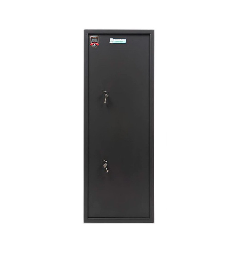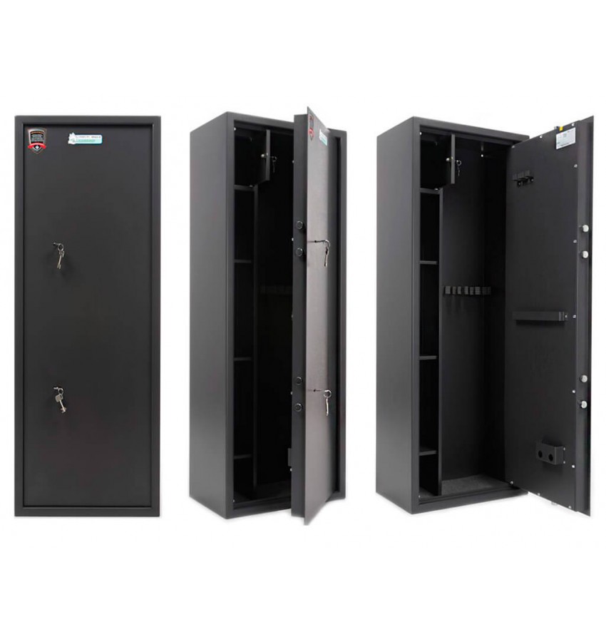 толщина металла корпуса и двери – 3 мм оборудованы патронным отделением, запирающимся на ключ, полками и ложементами для ружей (посмотреть ложементы)