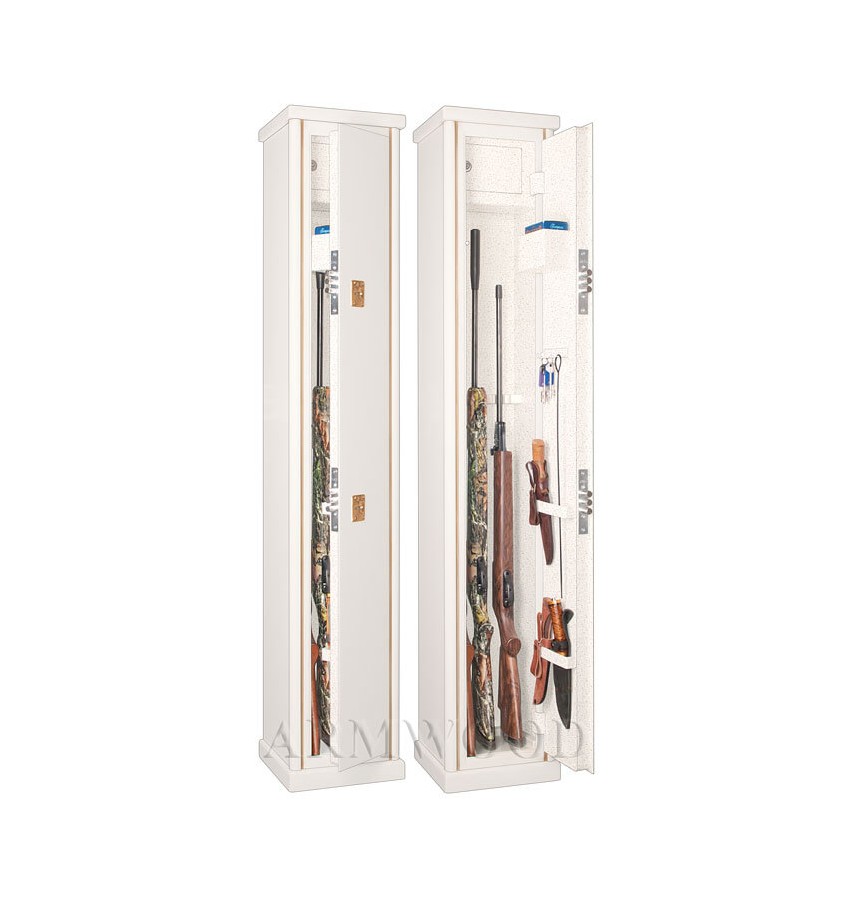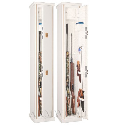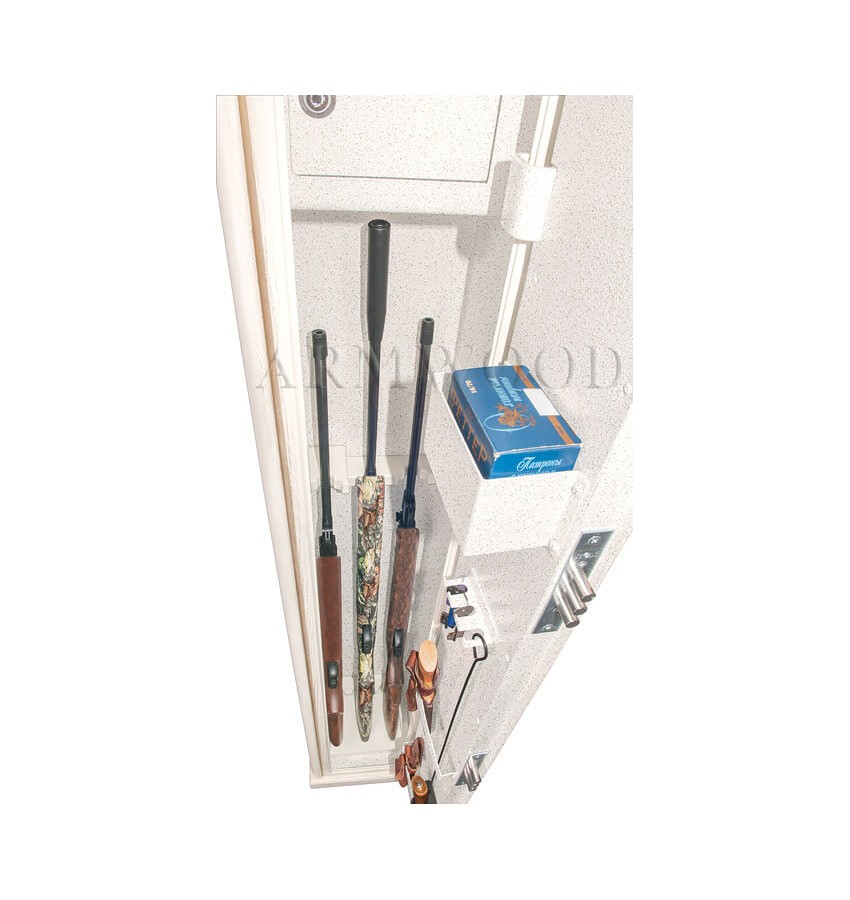 ОписаниеЭлитный оружейный сейф с отделкой натуральным деревом. Окрашенное дерево (по каталогу RAL) с патинированием. Сейфы полностью удовлетворяют требованиям МВД к хранению оружия. Замок Дверь сейфа оборудована двумя трёхригельными сертифицированными ключевыми замками 3 класса. Замки разработаны совместно с Cisa (Италия). По желанию заказчика возможна поставка сейфов с замками производства Германии: Mauer или Wittkopp. Защита Дверь сейфа имеет коробчатую конструкцию для дополнительного усиления. Петли внутренние из стали 6мм. Усиленный корпус. Внутреннее устройство Внутри сейфа деревянные ложементы на 3 ствола. Так же в комплект сейфа входит дополнительный роликовый ложемент, который легко устанавливается в любое нужное место сейфа (например этот ложемент можно использовать для более удобного хранения оружия с оптикой). На внутренней поверхности двери сейфа имеются: удобный лоток, два держателя для хранения ножей, а также крючки для хранения шомполов, ключей и прочего. Для сейфов Armwood с внутренней отделкой Primary имеется возможность выбрать различные варианты полимерно-порошковых покрытий. Имеются покрытия различных цветов и структур, некоторые варианты полимерно-порошковых покрытий представлены на дополнительном фото. Установка Предусмотрена возможность крепления сейфа к стене. По желанию заказчика возможна поставка в исполнении, предусматривающем также крепление и к полу. Модификации Металлические детали сейфа имеют гигиенически безопасное износо- и коррозионно-устойчивое полимерно-порошковое покрытие на основе материалов производства Италии или Франции. Имеются покрытия различных цветов и структур: металлики, антики и д.р. По желанию заказчика возможно изменение размеров, конструкции, внутреннего устройства и т.п. Возможна замена верхних деревянных ложементов на ложементы других типов (роликовые ложементы-зажимы производства Германии, специальные ложементы для хранения оружия с крупной оптикой и т.п.). В зависимости от типа внутренней отделки имеются четыре модификации этих оружейных сейфов. Модификация Primary(базовая) имеет деревянные ложементы отделанные винилискожей либо ложементы «премиум». Модификации Lux и Lux+ имеют дополнительно к базовой - мягкую полную внутреннюю отделку винилискожей. Различные варианты цвета винилискожи по нашему каталогу. New! Поступила винилискожа, имитирующая кожу крокодилов, змей и т.п. Тоже различных цветов! Модификация Lux+ отличается от модификации Lux следующим: дополнительная отделка фасада внутреннего запираемого отделения деревом. Модификация Flock имеет полную внутреннюю отделку флокированием бархатом (различных цветов по нашему каталогу) и ложементы «премиум». Дополнительная информация Имеются различные варианты отделки натуральным деревом сейфов серии Armwood (под различную мебель). Возможна поставка данного сейфа в исполнении универсальный сейф. В этом случае сейф поставляется с дополнительными полками и может использоваться не только как оружейный сейф, но и как личный и офисный сейф. Любые сейфы Armwood могут поставляться как с традиционной деревянной отделкой, так и в исполнении окрашенное дерево с патинированием либо окрашенное дерево без патинирования. ДоставкаСтоимость доставки по Москве в пределах МКАД: при заказе от 20 000 рублей бесплатно, менее 20000 руб - 1200 рублей Дост