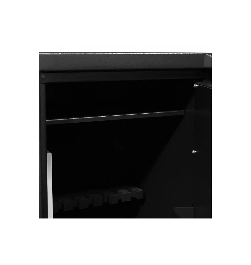Дополнительная защита: Несбрасываемая система аварийной блокировки, встроенная в дверной механизм Модификация E Электронный кодовый замок «SecuTronic», проверен VdS; сертифицирован ECB.S (стандарт EN 1300 класс B). 1 миллион реальных кодовых комбинаций. 3 батареи MicroLR 03 AAA в комплекте. Дверная ручка выдвигается на 50 мм. ДоставкаСтоимость доставки по Москве в пределах МКАД: при заказе от 20 000 рублей бесплатно, менее 20000 руб - 1200 рублей Доставка возможна на 06.12.2025 или на 07.12.2025 Доставка по РФ и СНГ: по тарифам транспортных компаний Стоимость разгрузки: 3975 руб СамовывозСамовывоз: со склада, после после подтверждения заказа ОплатаОплата: наличными при получении товара, безналичный расчет ( 100% предоплата) Сейф Burg–Wachter Ranger 1/8 E Black |