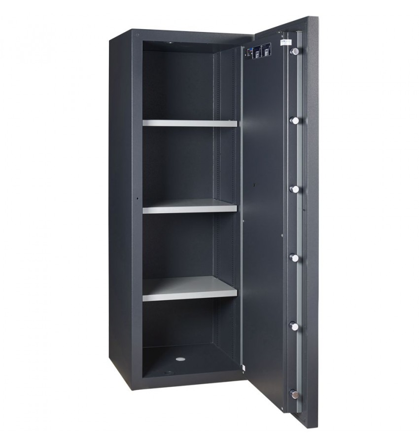 ОписаниеВариант с комбинированными характеристиками защиты и внушительными габаритными размерами. Второй класс взломостойкости вкупе с устойчивостью к огню класса 60Р – не часто встречающиеся параметры у подобных сейфов. Благодаря прямоугольной вертикальной форме и полезному объему в 354 литра, данная модель подойдёт для любых категорий ценностей, включая предметы старины и коллекционирования с нестандартным форматом. Входящие в комплект три съёмные полочки можно легко переставлять по всей высоте сейфа и создавать отдельные зоны для разных ценных вещей. Оба класса защиты, а также замок проверены и подтверждены европейскими сертификатами ECBS. Метод крепления (фиксации) - к полу специальным болтом, входящим в крепёжный комплект. Этот металлический сейф обладает корпусом и дверцей из двухслойной стали, внутри которой находится специальный инновационный композит, не поддающийся силовым атакам и создающий барьер для экстремальных температур. ДоставкаСтоимость доставки по Москве в пределах МКАД: при заказе от 20 000 рублей бесплатно, менее 20000 руб - 1200 рублей Доставка возможна на 14.12.2025 или на 15.12.2025 Доставка по РФ и СНГ: по тарифам транспортных компаний Стоимость разгрузки: 50 руб СамовывозСамовывоз: со склада, после после подтверждения заказа ОплатаОплата: наличными при получении товара, безналичный расчет ( 100% предоплата) Сейф Chubbsafes DuoGuard Grade 2 Size 350 K |