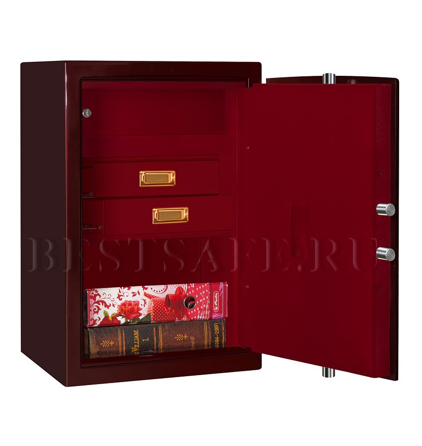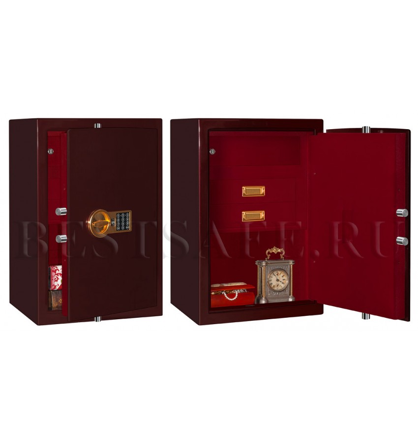 ОписаниеЭлитный взломоогнестойкий сейф. Покрытие глянцевый автомобильный металлик. Возможны различные цвета. Вся внутренняя поверхность сейфа имеет престижное мягкое покрытие флокированием бархатом. Сейф сертифицирован на устойчивость к взлому – 1 класс. Умеренная огнестойкость – приблизительно 20Б. Корпус имеет двойные стальные стенки, межстеночный наполнитель – бетон. Металлические детали сейфа имеют гигиенически-безопасное, коррозионно-стойкое полимерно-порошковое покрытие на основе материалов производства ЕС. Может использоваться как ювелирный сейф. Замок Сейф оборудован электронным кодовым замком PS-300 либо высокосекретным электронным кодовым замком Mauer (Германия). Уточняйте при покупке. Такие замки Вы можете по Вашему выбору эксплуатировать в режиме одного пользовательского кода, либо в режиме двух кодов (мастер-код и рабочий код). Вы можете выбрать кодовую панель электронного замка – Хром либо Gold. Варианты кодовых панелей представлены на дополнительном фото. Стоимость сейфа и гарантия зависит от типа замка и кодовой панели. Цена приведена для случая поставки сейфа с замком PS-300 с кодовой панелью Хром. Кодовые панели Gold имеют покрытие золотом 24 карата. На кодовую панель Mauer Gold имеется европейский сертификат. При поставке сейфа с электронным кодовым замком замком PS-300 ( с любой кодовой панелью) - гарантия на сейф – 5 лет, гарантия на замок составляет 2 года. При поставке сейфа с электронным кодовым замком Mauer (Германия) ( с любой кодовой панелью) гарантия – 5 лет, как на замок, так и на сейф. Защита Сейф имеет усиленную коробчатую дверь, передний лист двери – сталь 10мм. Петли – внутренние. Имеется защита замка от высверливания твёрдосплавной пластиной. Мощная запирающая система с запиранием по всем сторонам. Вращающиеся ригели диаметром 25мм. Корпус имеет двойные стальные стенки, межстеночный наполнитель – бетон. Внутреннее устройство Внутри сейфа запираемое кассовое отделение и два выдвижных лотка. Выдвижные лотки могут быть изготовлены с различными видами вставок (для хранения часов, ювелирных изделий и др.) либо без них. Некоторые варианты лотков на дополнительном фото. Установка Предусмотрена возможность крепления сейфа к полу. Модификации Имеются различные цвета и структуры наружного глянцевого покрытия. Имеются различные цвета внутренней отделки ( например на фото – флок бордо). Возможно изменение размеров, внутреннего устройства, типа и количества замков, в том числе изготовление с ключевыми замками ДоставкаСтоимость доставки по Москве в пределах МКАД: при заказе от 20 000 рублей бесплатно, менее 20000 руб - 1200 рублей Доставка возможна на 14.12.2025 или на 15.12.2025 Доставка по РФ и СНГ: по тарифам транспортных компаний Стоимость разгрузки: нет данных СамовывозСамовывоз: со склада, после после подтверждения заказа ОплатаОплата: наличными при получении товара, безналичный расчет ( 100% предоплата) Сейф Elitsafe 164 T EL M Flock 2 DR |