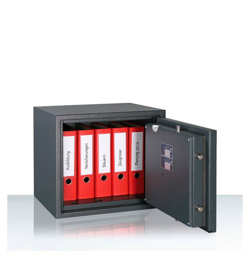 пройдены испытания на огнестойкость и получен сертификат по евростандарту EN-15659, класс LFS30, что означает защиту бумажных носителей от огня в течение минимум 30 минут.