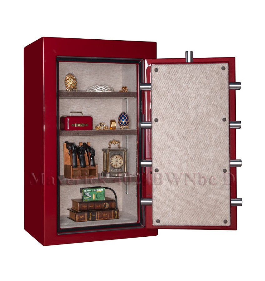 ОписаниеПокрытие автомобильный металлик глянцевый «перламутровый бордовый». Производство Fort Knox® (США). Сейфы Fort Knox® сертифицированы на взломостойкость и огнестойкость в США. Полностью удовлетворяют требованиям МВД. Великолепный дизайн! При изготовлении покрытий для этих сейфов используется специальный декоративный автомобильный металлик, такие же покрытия используются при производстве американских автомобилей премиум класса. Сейфы Fort Knox® изготавливаются непосредственно в США. Замок Сейф оборудован высокосекретным электронным кодовым замком Sargent & Greenleaf® (США). Этот замок вы можете по вашему желанию эксплуатировать как в режиме одного кода, так и в режимах используя от 2-х до 9-и кодов. Можно использовать иерархическую систему кодов: мастер-код – код руководителя – пользовательские коды. Инновационная защита замка от сверления – специальной твёрдой стальной пластиной с подшипниками. Защита Усиленный цельносварной корпус. Специальная технология сварки: проникающие сварные швы снаружи и армирующие сварные швы внутри. Дверь усиленная коробчатой конструкции. Дверь имеет дополнительную защиту специальной внутренней стальной пластиной. Дверь оборудована мощной многосторонней ригельной запирающей системой, 9 ригелей диаметром 38мм., из них 5 активных. Повышенная защита ригелей от сверления и выбивания специальной закалённой пластиной. Запатентованный высоконадёжный мощный поворотный запирающий механизм реечно-зубчатого типа обеспечивает увеличенный выход ригелей и повышенную защиту. Система внутренних и внешних RELOCKER (блокираторов) для защиты замка или/и запирающего механизма при механических и термических воздействиях. Межстеночное пространство сейфа имеет так же огнестойкий наполнитель. Fire Rating 1200°F (огнестойкость при температуре в испытательной печи 649°C, заданный предел огнестойкости 177°C) – 1,25H. Между корпусом и дверью для защиты внутреннего пространства сейфа при пожаре - имеются два контура уплотнения. Один контур для защиты от проникновения внутрь сейфа дыма и копоти. Второй контур может расширяться при нагревании в несколько раз. Он обеспечивает дополнительную герметичность и предназначен для увеличения защиты от проникновения внутрь сейфа раскалённых газов. Внутреннее устройство Внутри сейфа 3 съёмные полки с регулируемой высотой установки. Внутренняя поверхность сейфа, а также внутренние элементы имеют мягкую комфортную отделку. Установка Конструкцией сейфа предусмотрена возможность его крепления к полу. Дополнительная информация Полезная функция ригельной системы: при открытой двери невозможно выдвинуть ригели из короба двери, это позволяет избежать повреждения декоративного покрытия корпуса сейфа случайно выдвинутыми ригелями ДоставкаСтоимость доставки по Москве в пределах МКАД: при заказе от 20 000 рублей бесплатно, менее 20000 руб - 1200 рублей Доставка возможна на 15.12.2025 или на 16.12.2025 Доставка по РФ и СНГ: по тарифам транспортных компаний Стоимость разгрузки: 2760 руб СамовывозСамовывоз: со склада, после после подтверждения заказа ОплатаОплата: наличными при получении товара, безналичный расчет ( 100% предоплата) Сейф Fort Knox® Maverick 4024BWNbc D |