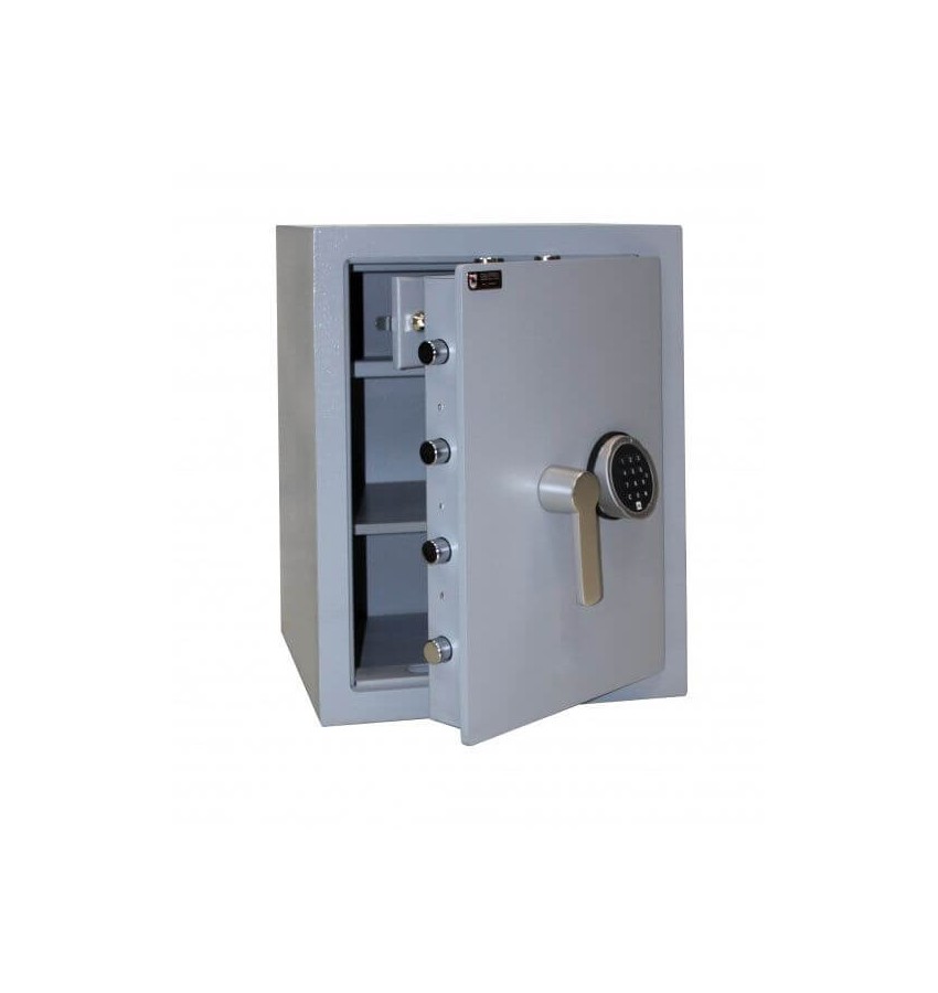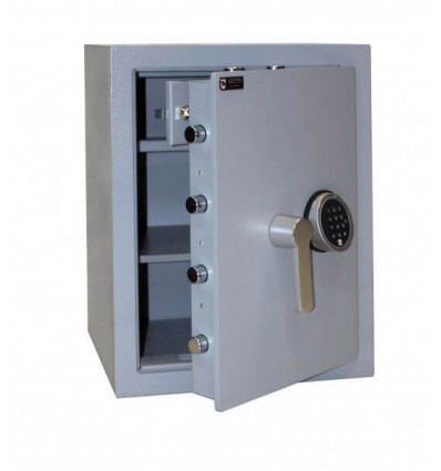 ОписаниеВзломостойкие сейфы серии CLE I прошли сертификацию в Германии и сертифицированы Европейским органом сертификации ECB-S по I классу сопротивления к взлому по EN 1143-1.Защитный слой корпуса сейфа состоит из фортификационного бетона толщиной 25 мм.Дверь имеет толщину металла 10 мм. Одна из лучших ригельных систем запирания: ригельная система а трехстороннего действия (8 хромированных активных вращающихся ригелей, диаметр ригеля 25 мм, антисрезы со стороны петель). Высокоточная лазерная резка двери, произведенная на заводе, не дает шансов для "подковыривания" и отжимания взломщикам. В районе замка и ригелей установлены легированные пластины от выбивания и высверливания. Сейф оснащен высококачественным электронным кодовым сейфовым замком M-LOCKS (Нидерланды), замок сертифицирован в 2 классе по VDS (Германия), лидер по сертификации в мире. замок работает от элемента питания Крона 9V, замена батарейки производится с внешней стороны двери. Стандартно, при качественном элементе питания и не частом использовании, батарейки хватает на 2-3 года. Когда заряд батареи ослабевает, индикатор на клавиатуре начинает моргать красным цветом и издавать писк. Замена батареи происходит с внешней стороны двери, под клавиатурой, снизу, есть специальная крышечка, при вынимании, которой можно произвести замену батареи. При замене или разрядке батареи, код не скидывается, он остается в памяти замка. После замены, вы пользуетесь в обычном режиме. Часто возникает вопрос, что удобнее ключ или электроника. Однозначно электроника, не надо думать где хранить ключ, куда его убрать, где спрятать. Функции замка:
