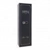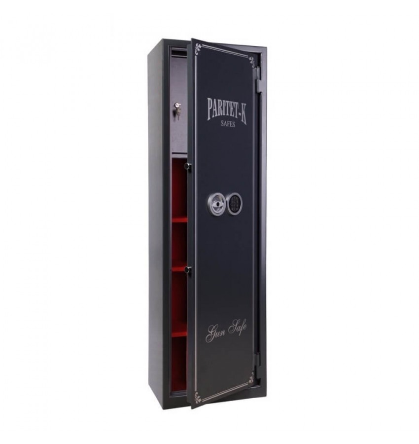 В модели установлен высокоточный сейфовый замок фирмы M-LOCKS (Нидерланды), сертификат класса VDS 2 Замок работает от элемента питания Крона 9V, замена батарейки производится с внутренней стороны двери. Стандартно, при качественном элементе питания и не частом использовании, батарейки хватает на 2-3 года. Когда заряд батареи ослабевает, индикатор на клавиатуре начинает моргать красным цветом и издавать писк. В случае, если вы этот момент пропустили, то можно осуществить дополнительную подзарядку для открытия сейфа и смены батарейки. Для этого на клавиатуре есть специальные разъемы, к которым можно поднести новую батарейку, удерживая, набрать свой код и открыть сейф. При замене или разрядке батареи, код не скидывается, он остается в памяти замка. После замены, вы пользуетесь в обычном режиме. Часто возникает вопрос, что удобнее ключ или электроника. Однозначно электроника, не надо думать где хранить ключ, куда его убрать, где спрятать. Функции замка: