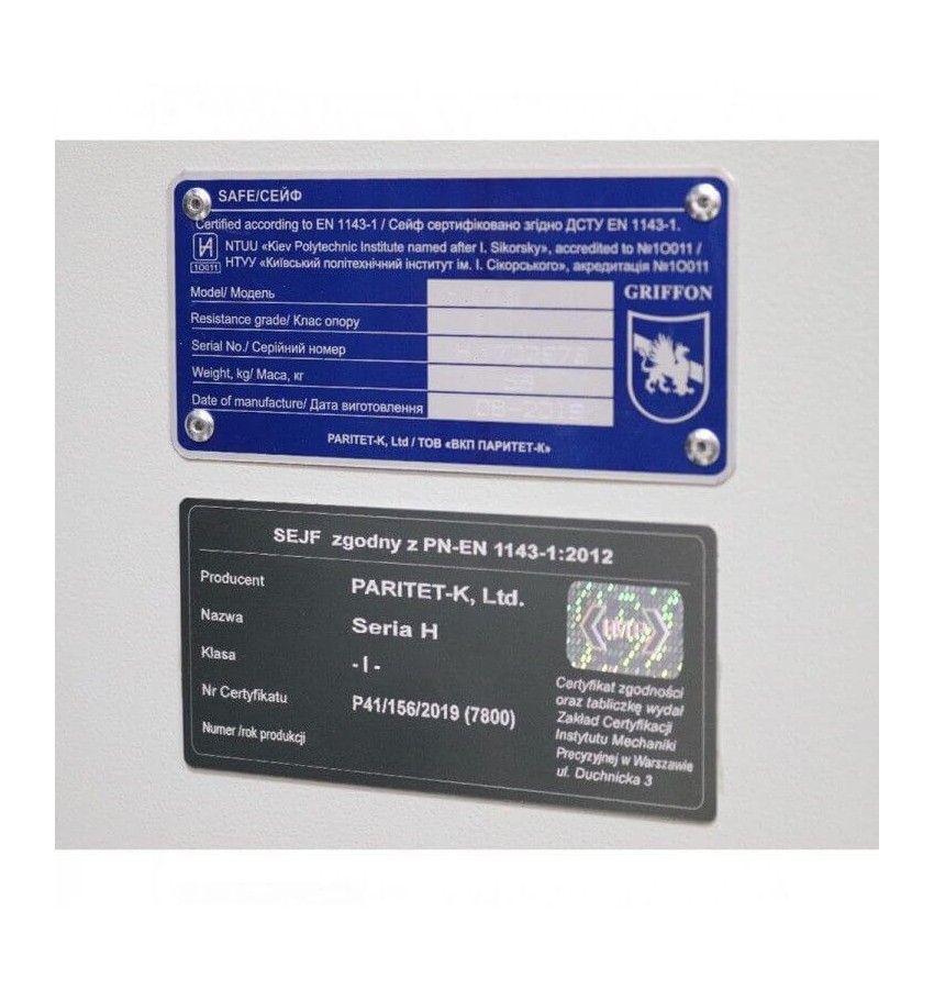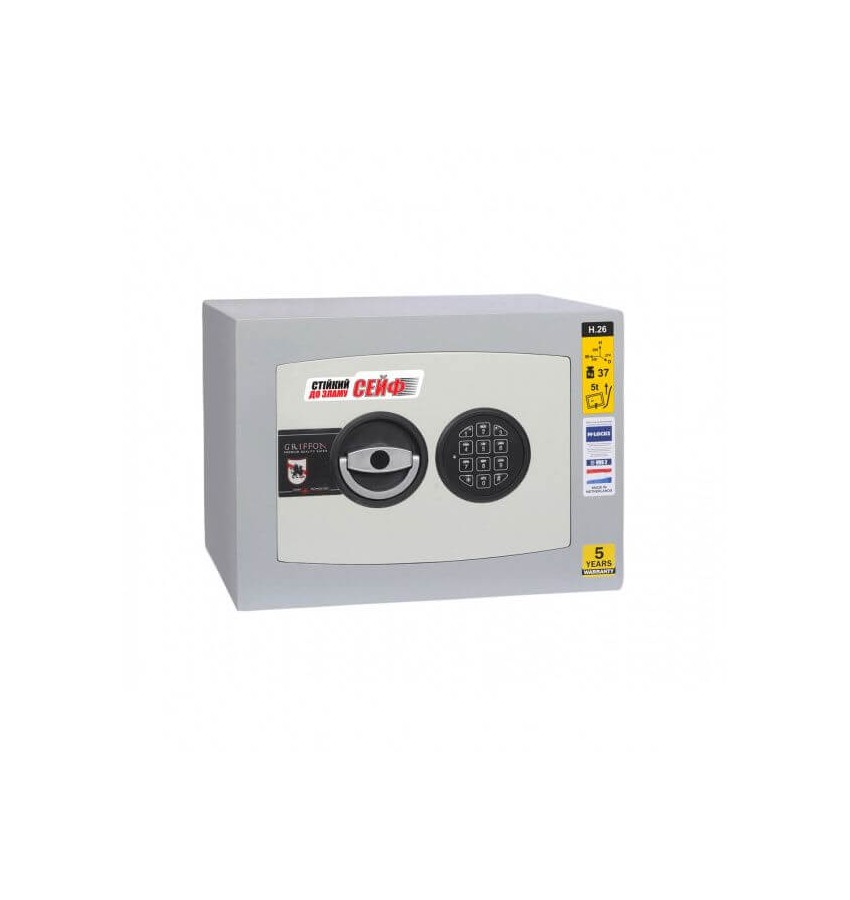 Взломостойкие сейфы TM Griffon серии H соответствуют требованиям взломостойкости 1 класса и имеют толщину защитного слоя 25 мм. Особенность сейфов серии H – наполненность их стенок фортификационным бетоном, что позволяет многократно увеличить степень безопасности и повысить уровень защищенности от возможного взлома. В сейфе установлена трехсторонняя ригельная система, состоит их 4 хромированных активных вращающихся ригеля, диаметр ригеля 25 мм. Сейф оборудован электронным замком от немецкого производителя M-locks и соответствует 1 класс по VDS. Окрашен гигиенически безопасной порошковой краской в серый цвет (RAL 7040, RAL 7035) Производитель настоятельно рекомендует крепить сейф, для создания проблем злоумышленникам. Для этого в конструкции предусмотрено отверстия в пол и стенку
