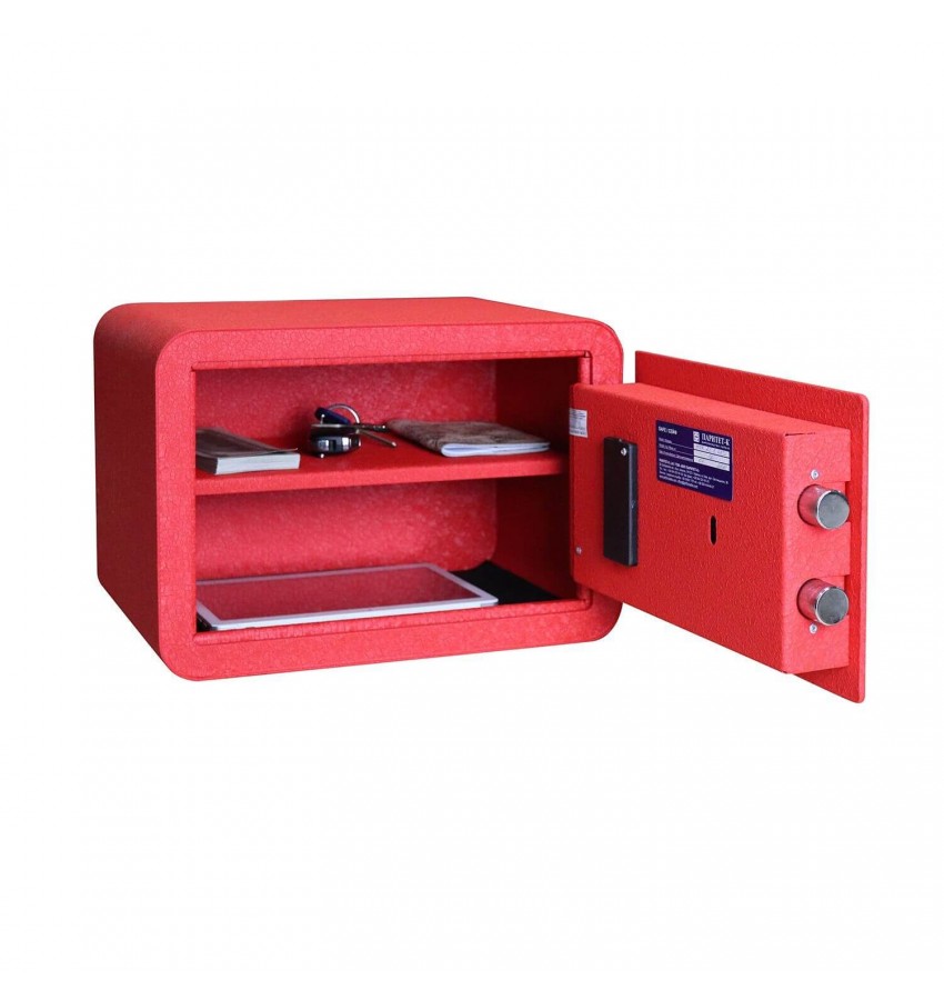 Сейф мебельный с электронным замком предназначен для хранения небольших ценностей дома или в офисе. Ригельная система запирания - два ригеля диаметром 25 мм. Окраска сейфа: порошковое покрытие. Стильный дизайн, оригинальный внешний вид. Толщина металла двери 4 мм. Надёжная металлическая ручка. Электронный кодовый замок повышенной секретности MySafe работает на батарейке типа "Крона" 9 вольт. Батарейка меняется внутри сейфа. При смене батарейки код не сбрасывается. Если батарейка села, а сейф заперт, достаточно прислонить новую батарей к специальным разъёмам на двери сейфа и набрать код. Возможно использование двух кодов: Пользователь 1 и Пользователь 2. Код можно менять по инструкции на русском языке. Длина кода от шести до восьми знаков. Комплектуется полкой. Производитель предусмотрел отверстия для анкерного крепления к полу или стене. Гарантия на конструкцию - 5 лет, гарантия на замок - 1 год.