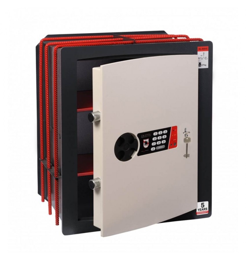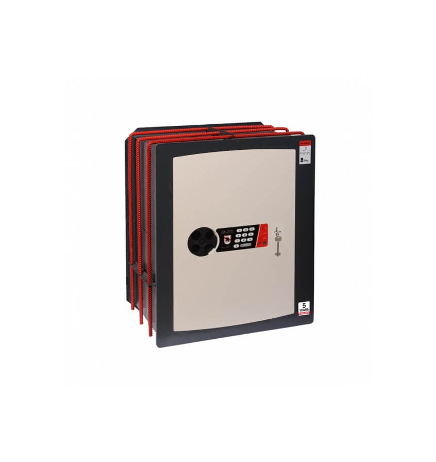 ОписаниеСейф для встраивания в стену. Особое внимание уделено лицевой панели, так как с остальных сторон тайник окружен стеной - ее толщина равна 10 мм. За прочную фиксацию двери в закрытом положении отвечают хромированные вращающиеся ригели диаметром 25 мм. Сейф окрашен порошковой краской в антрацитово-серый и кремово-белый цвет (RAL 7016, RAL 9001). Особенности конструкции: