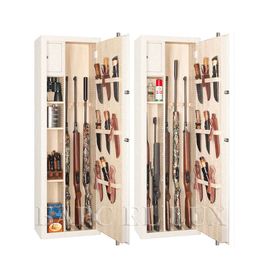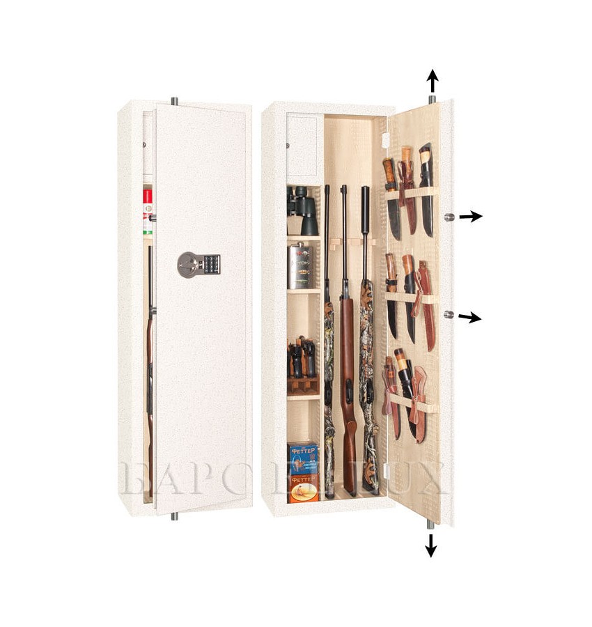ОписаниеПолностью удовлетворяет требованиям МВД для физических и юридических лиц. Сейф имеет гигиенически безопасное износо- и коррозионно-устойчивое полимерно-порошковое покрытие на основе материалов производства Италии и Франции. Имеются покрытия различных цветов и структур: металлики, антики и д.р. Различные варианты цветового дизайна, например: корпус и двери имеют одинаковое покрытие, либо корпус и двери имеют покрытия разного цвета – выбирайте. Модель имеет полную внутреннюю мягкую отделку искусственной кожей. Полная внутренняя мягкая отделка защищает Ваше оружие от контакта с металлом, царапин, повреждений и т.п. Искусственная кожа (различных цветов и рисунков по нашему каталогу), в том числе имитирующая кожу крокодилов, змей и т.п. Замок Cейф оборудован электронным кодовым замком. Замок имеет сертификат Евросоюза, ESB S (Германия). Защита Изготовлен из стали толщиной 3 мм. Дверь имеет коробчатую конструкцию для дополнительного усиления. Петли-внутренние из стали 6 мм. Сейф имеет мощную вертикальную и горизонтальную ригельную систему с запиранием по всем сторонам. Внутреннее устройство Вертикальная перегородка, которая делит внутреннее пространства сейфа на две области. В "широкой области" имеются нижние и верхние деревянные ложементы специальной удобной формы. В "узкой области" находится запираемое (патронное) отделение и 3 съемные регулируемые по высоте полки. Если устанавливать не все полки, то в узкой зоне можно хранить ещё два ствола. Внутренняя поверхность двери имеет три держателя для удобного хранения ножей. Установка Предусмотрена возможность крепления сейфа к стене и к полу. Модификации В базовом варианте сейф поставляется с панелью Хром. По желанию заказчика может поставляться с панелью Gold, имеющей покрытие золотом 24 карата, в этом случае доплата 16300 рублей. По желанию заказчика возможна замена верхних деревянных ложементов на ложементы других типов, например роликовые ложементы-зажимы производства Германии. По желанию заказчика сейф дополнительно может быть оборудован опломбирующими устройствами. По желанию заказчика возможно изменение типа и количества замков (например: электронный замок + ключевой замок, два электронных замка и др.), размеров, толщины металла, внутреннего устройства и т.п. Дополнительная информация Ружья можно хранить как по одну сторону от перегородки, так и по обе стороны от перегородки. ДоставкаСтоимость доставки по Москве в пределах МКАД: при заказе от 20 000 рублей бесплатно, менее 20000 руб - 1200 рублей Доставка возможна на 15.12.2025 или на 16.12.2025 Доставка по РФ и СНГ: по тарифам транспортных компаний Стоимость разгрузки: 900 руб СамовывозСамовывоз: со склада, после после подтверждения заказа ОплатаОплата: наличными при получении товара, безналичный расчет ( 100% предоплата) Сейф Gunsafe БАРС EL LUX |