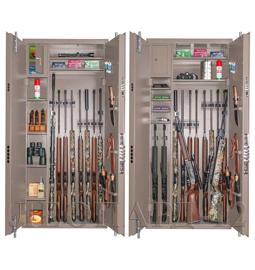 ОписаниеПолностью удовлетворяет требованиям МВД к хранению оружия физическими и юридическими лицами. Сейф имеет гигиенически безопасное износо- и коррозионно-устойчивое полимерно-порошковое покрытие на основе материалов производства Италии и Франции. Стандартный цвет - серый либо медный антик. Замок Сейф Леопард-12 оборудован двумя сертифицированными ключевыми замками: трёхригельным замком 2 класса, а также пятиригельным замком 4 класса повышенной секретности и взломостойкости. Этот замок имеет защиту, для препятствования перепиливанию ригелей. Каждый замок наружной двери уже оборудован опломбирующим устройством. Также сейф оборудован двумя вертикальными (на каждой двери) ригельными системами. Защита Оружейный сейф изготовлен из стали толщиной 3мм. Двери имеют коробчатую конструкцию для дополнительного усиления. Петли - внутренние. Внутреннее устройство Сейф уже укомплектован двенадцатью роликовыми ложементами-зажимами. Оружейный сейф имеет вертикальную перегородку, которая делит внутреннее пространство на две области – широкую и узкую. Внутри узкой области запираемое (патронное) отделение с съёмной полкой внутри и четыре съёмные полки с регулируемой высотой установки. Внутри широкой области 2 съёмные полки с регулируемой высотой установки. Сейф оборудован двумя удобными держателями для ложементов. Эти держатели легко устанавливаются в любое нужное место задней стенки корпуса сейфа. Ложементы устанавливаются на держатели в любое удобное место (обеспечивая различное, нужное Вам межствольное расстояние). По Вашему желанию Вы можете устанавливать ложементы и без использования держателей. В широкой области также имеются два боковых держателя для роликовых ложементов-зажимов с возможностью установки ложементов на разную высоту. Эти ложементы особенно удобны для хранения оружия с оптикой. Ружья в сейфе можно хранить как в широкой, так и в узкой области. На внутренней поверхности одной из дверей имеются крючки для хранения шомполов и ключей и три рамки для хранения ножей и т.п. Дно сейфа отделано ковролином. Установка Предусмотрена возможность крепления сейфа к стене. По желанию заказчика возможна так же поставка в исполнении, предусматривающем крепление и к полу. Модификации Дополнительно сейф может комплектоваться дополнительными ложементами, либо ложементами других типов, например: деревянные верхние ложементы, деревянные нижние ложементы и др. Сейф дополнительно может быть укомплектован пистолетными ложементами (деревянными либо пластиковыми). ДоставкаСтоимость доставки по Москве в пределах МКАД: при заказе от 20 000 рублей бесплатно, менее 20000 руб - 1200 рублей Доставка возможна на 12.12.2025 или на 13.12.2025 Доставка по РФ и СНГ: по тарифам транспортных компаний Стоимость разгрузки: 1770 руб СамовывозСамовывоз: со склада, после после подтверждения заказа ОплатаОплата: наличными при получении товара, безналичный расчет ( 100% предоплата) Сейф Gunsafe Леопард-12 |