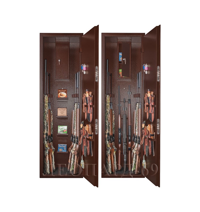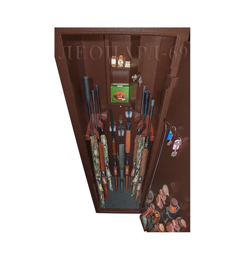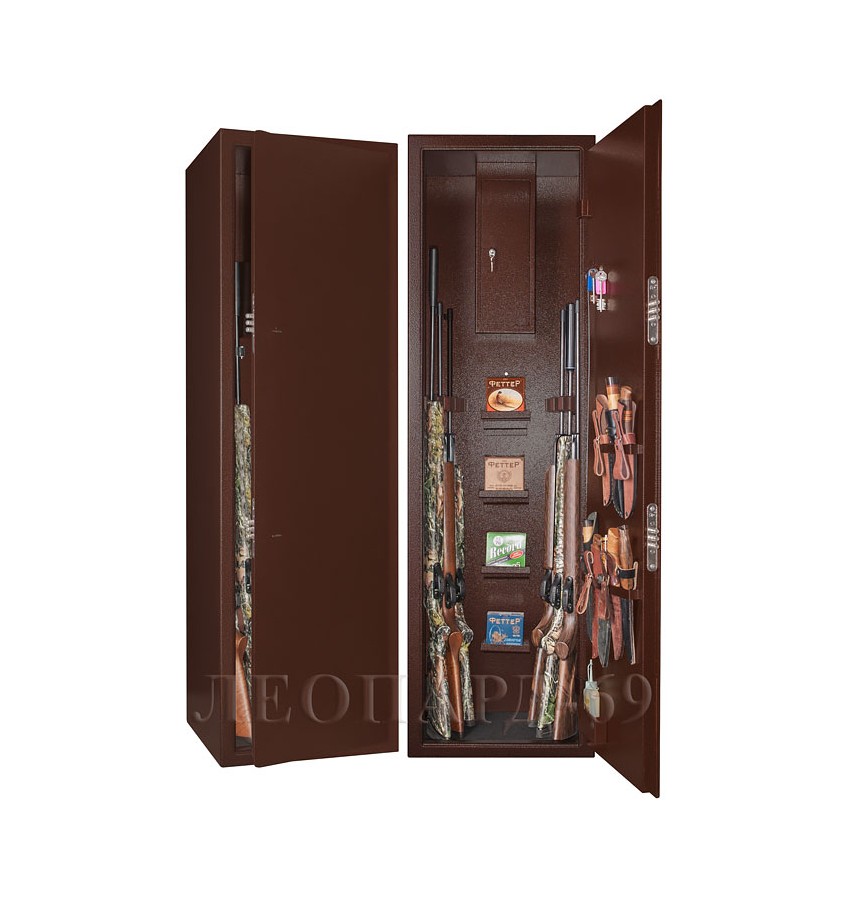 ОписаниеПолностью удовлетворяет требованиям МВД к хранению оружия. Оружейный сейф имеет коррозионно- и износо- стойкое, гигиенически-безопасное полимерно-порошковое покрытие на основе материалов производства Италии. Замок Сейф оборудован двумя сертифицированными трехригельными замками второго класса. Защита Цельносварная усиленная стальная конструкция из стали 3 мм.. Петли - внутренние. Дверь сейфа имеет коробчатую конструкцию для дополнительного усиления. Внутреннее устройство Оружейный сейф уже укомплектован деревянными ложементами на шесть стволов. Оружейный сейф имеет вертикальнорасположенное внутреннее запираемое (патронное) отделение со съёмной полкой внутри. Ниже запираемого отделения находятся четыре съёмные полки. Если устанавливать не все полки, то на их месте можно хранить дополнительные три ствола. На внутренней поверхности двери имеются крючки для хранения шомполов и ключей, 2 рамки для хранения ножей и т.п., а так же лоток. Дополнительно сейф может комплектоваться роликовыми ложементами-зажимами производства Германии. Дно этого оружейного сейфа отделано ковролином. Установка Предусмотрена возможность крепления сейфа к стене. По желанию заказчика возможна так же поставка в исполнении, предусматривающем крепление и к полу. ДоставкаСтоимость доставки по Москве в пределах МКАД: при заказе от 20 000 рублей бесплатно, менее 20000 руб - 1200 рублей Доставка возможна на 13.12.2025 или на 14.12.2025 Доставка по РФ и СНГ: по тарифам транспортных компаний Стоимость разгрузки: 900 руб СамовывозСамовывоз: со склада, после после подтверждения заказа ОплатаОплата: наличными при получении товара, безналичный расчет ( 100% предоплата) Сейф Gunsafe Леопард-69 |