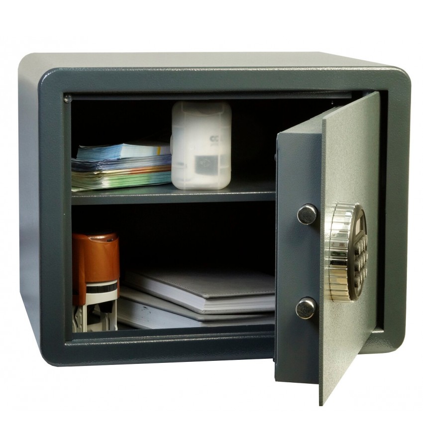 - На поверхность сейфа нанесено двух цветное полимерное покрытие двух оттенков серого цвета.