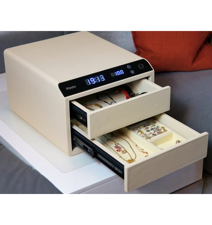 ОписаниеСейф выполнен из металла, обтянутого высококачественной экокожей, что придает ему элегантный и изысканный вид. Сейф оснащен биометрическим замком, который открывается с помощью сканирования отпечатка пальца. Вы можете записать до 100 отпечатков в память устройства. Внутри сейфа-шкатулки есть съемный лоток для размещения ювелирных украшений. Лоток имеет мягкое внутреннее наполнение, которое обеспечивает дополнительную защиту украшений от царапин и повреждений. Сейф работает от встроенного аккумулятора, что обеспечивает бесперебойную работу и удобство использования. Встроенная литиевая батарея легко заряжается от любой зарядки для смартфонов или с помощью внешнего аккумулятора с разъемом типа USB TYPE-C. Вы можете быть уверены в сохранности и надежности своих ювелирных изделий, храня их сейфе-шкатулке. Сейф-шкатулку вы можете прикрепить к полу или стене используя заранее подготовленные отверстия для крепления. Для экстренного открывания предусмотрен ключ. В верхней секции сейфа-шкатулки имеется элегантная подсветка внутреннего пространства для удобства использования при недостатке освещения. Не упустите возможность хранить ваши ценности в безопасности, используя этот сейф для ювелирных украшений. Он не только обеспечит безопасность ваших ценных вещей, но и станет изысканным дополнением к вашему интерьеру. ДоставкаСтоимость доставки по Москве в пределах МКАД: при заказе от 20 000 рублей бесплатно, менее 20000 руб - 1200 рублей Доставка возможна на 14.12.2025 или на 15.12.2025 Доставка по РФ и СНГ: по тарифам транспортных компаний Стоимость разгрузки: 50 руб СамовывозСамовывоз: со склада, после после подтверждения заказа ОплатаОплата: наличными при получении товара, безналичный расчет ( 100% предоплата) Сейф Klesto Smart JS1 слоновая кость |