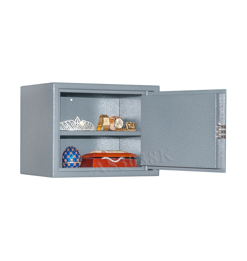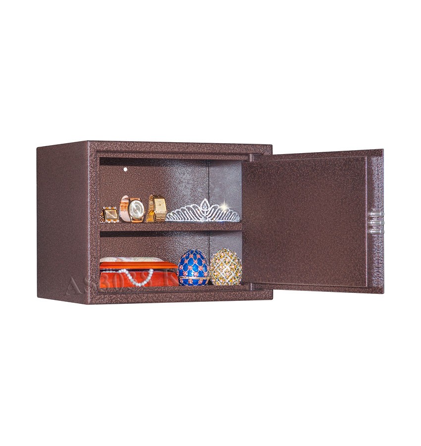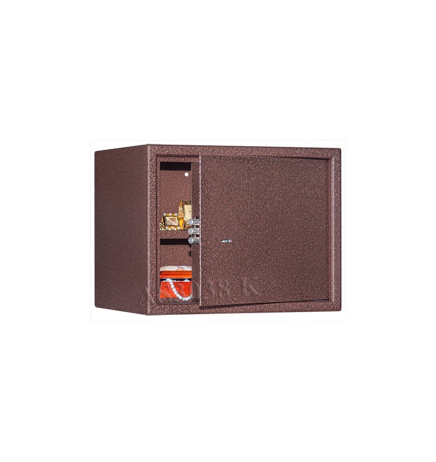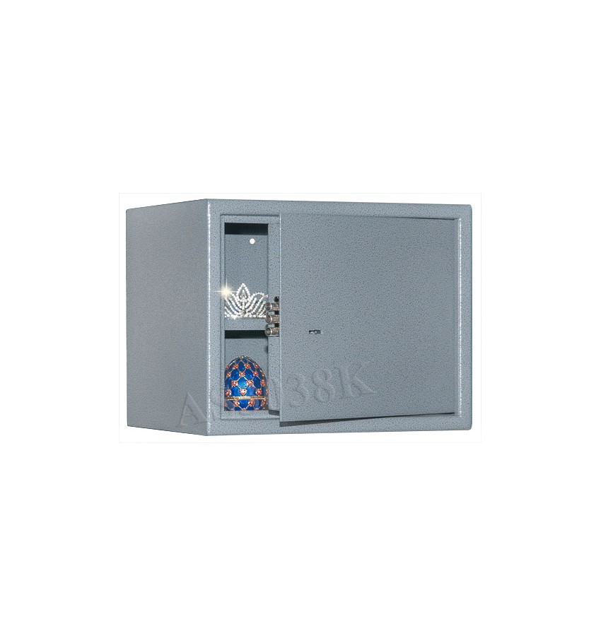 Имеются различные цвета. Используется в качестве мебельного, настольного, пистолетного сейфа и т.п. Удовлетворяет требованиям МВД. Сейф имеет гигиенически безопасное, износо- и коррозионно-устойчивое полимерно-порошковое покрытие. Замок Сейф оборудован сертифицированным ключевым трёхригельным сувальдным замком 2 класса. Защита Усиленный корпус. Дверь сейфа усиленная коробчатая. Передний лист двери - сталь 3 мм. Петли - внутренние. Внутреннее устройство Внутри сейфа съёмная полка. Дно сейфа отделано ковролином. В сейф помещаются скоросшиватели с документами формата А4. Установка Предусмотрена возможность установки сейфа в мебель, крепления сейфа к стене, к полу, мебельной полке и т.п. Модификации Дополнительно может комплектоваться пистолетными ложементами (пластиковыми либо деревянными) а также колодками под патроны. Сейфы этой модели стандартно поставляются с различными вариантами полимерно-порошковых покрытий: эффект молотковой эмали серый (как на центральном фото), медный антик, светло-серый шагрень, а также черный дымчатый. Уточняйте при заказе в каких цветах имеются сейфы в наличии. Ассортимент сейфов по цвету может меняться
