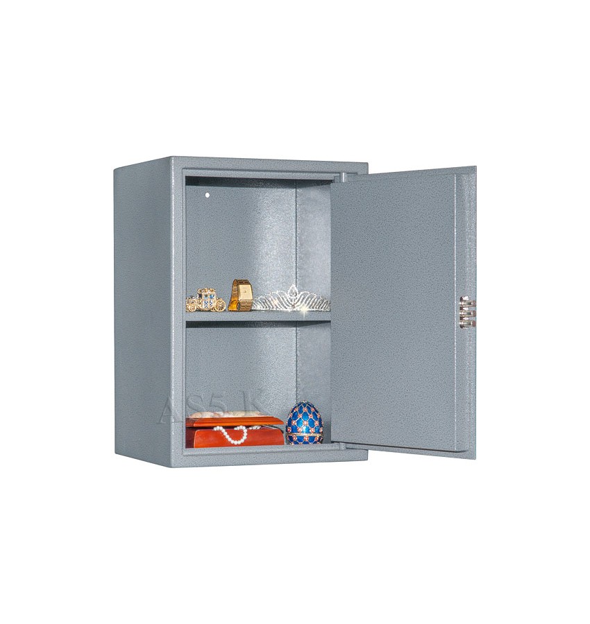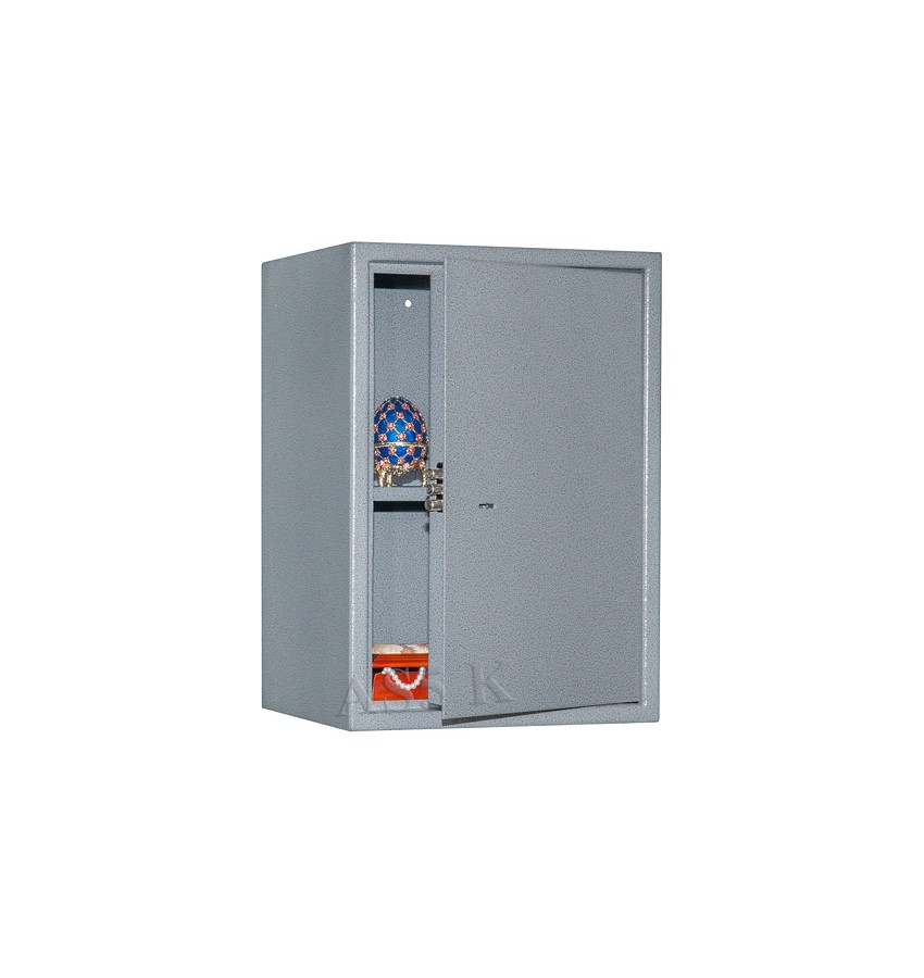 Имеются различные цвета. Используется в качестве мебельного либо отдельно стоящего, а так же как пистолетного сейфа и т.п. Удовлетворяет требованиям МВД. Сейф имеет гигиенически безопасное, износо- и коррозионно-устойчивое полимерно-порошковое покрытие. Замок Сейф оборудован сертифицированным ключевым трёхригельным сувальдным замком 2 класса. Защита Усиленный корпус. Дверь сейфа усиленная коробчатая. Передний лист двери - сталь 3 мм. Петли - внутренние. Внутреннее устройство Внутри сейфа съёмная полка. Дно сейфа отделано ковролином. В сейф помещаются скоросшиватели с документами формата А4. Установка Предусмотрена возможность установки сейфа в мебель, крепления сейфа к стене, к полу, мебельной полке и т.п. Модификации Дополнительно может комплектоваться пистолетными ложементами (пластиковыми либо деревянными) а также колодками под патроны. Сейфы этой модели стандартно поставляются с различными вариантами полимерно-порошковых покрытий: эффект молотковой эмали серый (как на центральном фото), медный антик, светло-серый шагрень, а также черный дымчатый. Уточняйте при заказе в каких цветах имеются сейфы в наличии. Ассортимент сейфов по цвету может меняться