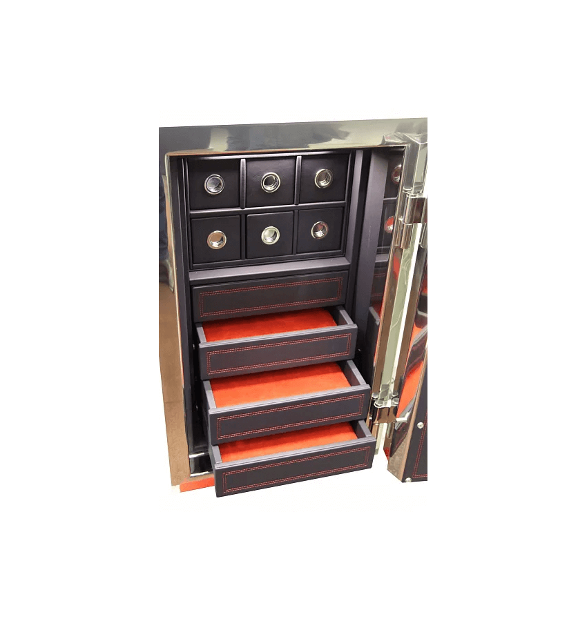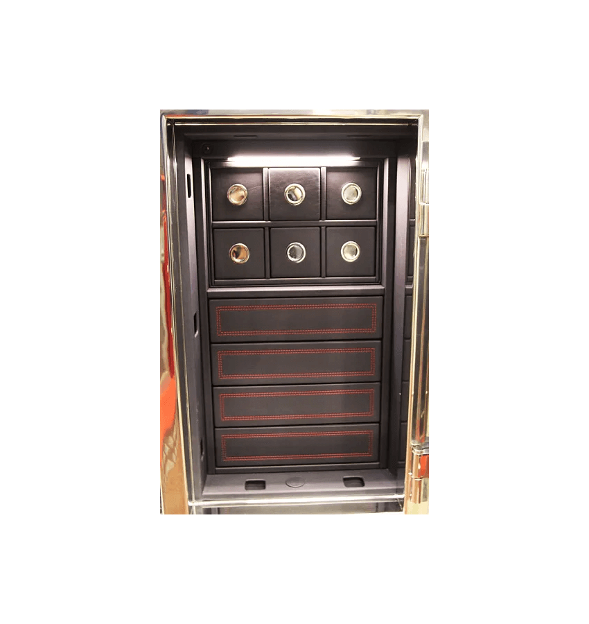 ОписаниеSANKT GALLEN 40201 CHROME Быть лучшим среди стильных – таково предназначение сейфа SANKT GALLEN 40201 CHROME от компании Muller Safe. Его корпус из нержавеющей стали отполирован до уникального для этого металла зеркального блеска, и сейф способен буквально раствориться в пространстве любого интерьера. Весит это творение немецких конструкторов и дизайнеров 120 кг. Сейф имеет средние размеры (высота – 80 см, ширина – 50 см, глубина – 50 см) и многослойную структуру. Его дверца оснащена ригелями, которые надежно блокируют ее с трех сторон. SANKT GALLEN 40201 CHROME оборудован также системой защиты против механических воздействий на него, таких как высверливание и выбивание. Высокие требования к надежности подтверждены 1-м классом взломостойкости, который присвоен этому респектабельному хранилищу европейскими сертификатами ECB-S/EN1300. Внутреннее наполнение сейфа отличают изысканность и стиль. SANKT GALLEN 40201 CHROME оснащен 4 выдвижными и 6 скрытыми ящичками с отделкой из натуральной кожи и алькантары и 6 вотчвиндерами для автоматического подзавода люксовых часов. «ISS» гарантирует, что ваши ценности будут храниться в атмосфере роскоши и безопасности. ДоставкаСтоимость доставки по Москве в пределах МКАД: при заказе от 20 000 рублей бесплатно, менее 20000 руб - 1200 рублей Доставка возможна на 15.12.2025 или на 16.12.2025 Доставка по РФ и СНГ: по тарифам транспортных компаний Стоимость разгрузки: 2520 руб СамовывозСамовывоз: со склада, после после подтверждения заказа ОплатаОплата: наличными при получении товара, безналичный расчет ( 100% предоплата) Сейф Muller Safe St.Gallen 40251 chrome |