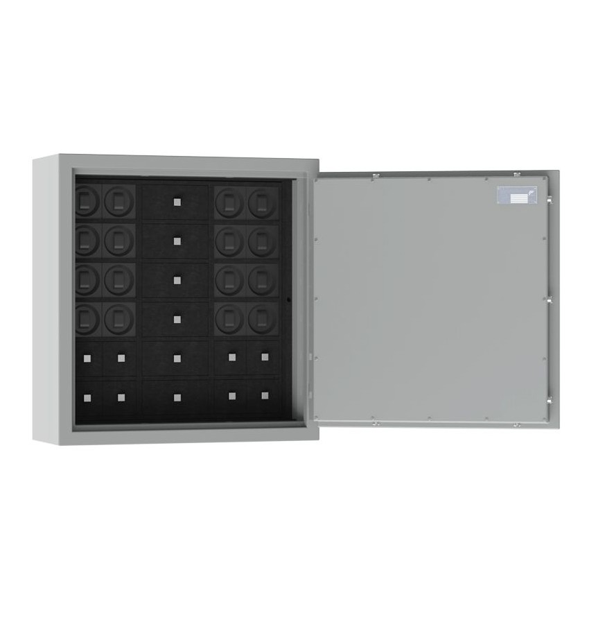 Взломостойкие, пожаростойкие сейфы Muller Safe серии U-SAFE — превосходное решение для хранения ценных вещей, ювелирных украшений и часов. Сейфы оборудованы электронным американским кодовым замком «LaGard». Внутренняя поверхность сейфа отделана высококачественной алькантарой. Имеется светодиодная подсветка снабженная рассеивателем света – дающим приятный мягкий свет. Яркость подсветки настраивается с пульта дистанционного управления. Сейфы могут быть укомплектованы ящиками двух размеров, предназначенными для удобного хранения ювелирных изделий и/или автоподзаводами для часов. Ячейки для подзаводов имеют размеры 100*100*100 мм, идеально подходят для размещения автоподзаводов швейцарской компании Swiss Kubik. Модели имеют штатные отверстия для крепления к стене.