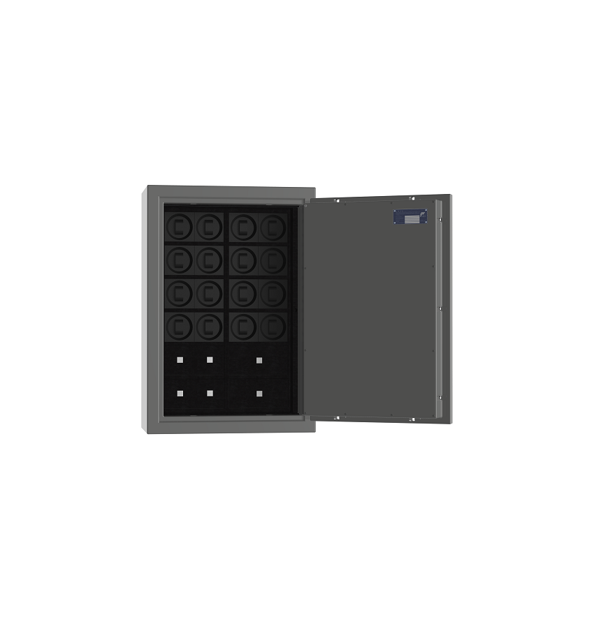 Сейфы для часов Meuller Safe Взломостойкие, пожаростойкие сейфы Muller Safe серии U-SAFE — превосходное решение для хранения ценных вещей, ювелирных украшений и часов. Сейфы оборудованы электронным кодовым замком «LaGard» производство США. Внутренняя поверхность сейфа отделана алькантарой. Имеется светодиодная подсветка снабженная рассеивателем света – дающим приятный мягкий свет. Яркость подсветки настраивается с пульта дистанционного управления. Сейфы могут быть укомплектованы ящиками двух размеров, предназначенными для удобного хранения ювелирных изделий и/или автоподзаводами для часов. Ячейки для подзаводов имеют размеры 100*100*100 мм, идеально подходят для размещения автоподзаводов швейцарской компании Swiss Kubik. Модели имеют штатные отверстия для крепления к стене.