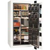 ОписаниеПокрытие: Автомобильный глянец жемчужно-белый. Универсальный сейф, может использоваться как в качестве оружейного сейфа, так и в качестве личного сейфа. Производство Liberty Safe and Security Products, Inc (США, штат Юта). Сейфы Liberty сертифицированы на взломостойкость и огнестойкость в США. Полностью удовлетворяют требованиям Росгвардии. Великолепный дизайн! Данная модель отличается от модели Lincoln Traditional только дизайном двери. Сейфы изготавливаются непосредственно в США. Замок Сейф оборудован высокосекретным электронным кодовым замком SecuRam® (США). Замок имеет удобный дисплей. Этот замок Вы можете использовать с одним пользовательским кодом либо с двумя кодами: код руководителя (мастер-код) и рабочий код. Инновационная защита замка – закалённой пластиной с вращающимися шариками. Шарики вращаются если в них упирается сверло. New! Кодовая панель замка теперь имеет удобную светодиодную подсветку. Защита Усиленный корпус. Дверь усиленная коробчатой конструкции. Дополнительное усиление двери внутренним стальным листом. Дверь оборудована мощной многосторонней ригельной запирающей системой военного типа. 10 активных прямоугольных ригелей, изготовленных из стальной плиты. Специальные пластины внутри двери на рейках с ригелями для усиления защиты при попытке вскрытия монтировкой, рычагом и т.п. Инновационный поворотный запирающий механизм DX-90 MONSTER MECH с усиленной защитой. Увеличенный выход ригелей по сравнению с традиционными запирающими механизмами. Тип запирающего механизма - со смещенным центром, эксцентриковый, прямого привода. Этот запирающий механизм имеет лучшую защиту от бокового выбивания ригелей (по сравнению с традиционными запирающими механизмами). Инновационный привод поворотного запирающего механизма «SURETIGHT» с муфтой скольжения для защиты замка при приложении крутящего мышечного усилия при попытке взлома. Система внутренних и внешних Fail-Safe™ relocker для блокировки замка или/и запирающего механизма при механических и термических воздействиях на замок. Security Level (взломостойкость по шкале Liberty Safe) – 26. Fire Rating 1200°F (огнестойкость при температуре в испытательной печи 649°C, заданный предел огнестойкости 177°C) – 1,5H. BTU Heat Rating (огнестойкость в Британских единицах тепловой мощности) – 95,000 BTUs. Для дополнительной защиты от проникновения внутрь сейфа при пожаре раскалённых газов, тушащих жидкостей и гари – предусмотрен уплотнительный контур между дверью и корпусом сейфа. Эти уплотнительные прокладки выполнены из специального термостойкого материала и расширяются при пожаре (до 7 раз), обеспечивая дополнительную герметичность. Внутреннее устройство Внутри сейфа ложементы и полки, съёмные с регулируемой высотой установки. Внутренняя поверхность корпуса, а также внутренние элементы имеют мягкую отделку. Сейф имеет удобный выдвижной ящик для хранения драгоценностей. Внутренняя поверхность двери сейфа имеет держатели для пистолетов, карманы, держатели для ножей и т.п., удобные закрывающиеся сумки. Так же имеется специальнй закрывающийся пакет COOL POCKET™ для хранения особо важных документов. Он изготовлен из специальных материалов и обеспечивает дополнительную тепловую защиту. Сейф имеет электрическую светодиодную подсветку с датчиком движения. Подсветка включается автоматически при открывании двери сейфа. Сейф укомплектован в
