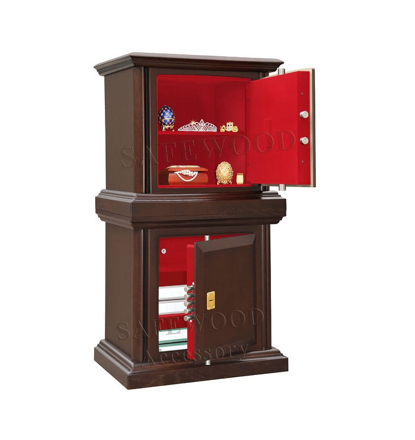 ОписаниеЭлитный сейф - подставка с отделкой натуральным деревом для сейфов SAFEWOOD . Может использоваться как ювелирный сейф. Для хранения ювелирных изделий, украшений и ценностей сейф дополнительно комплектуется выдвижными или съёмными флокированными лотками. Замок Сейф - подставка оборудован сертифицированным ключевым замком 4-го класса!!! повышенной взломостойкости и секретности (1,5 миллиона комбинаций). Замки разработаны Cisa (Италия). Возможно также изготовление с замками производства Германии.Сейф - подставка имеет мощную вертикальную и горизонтальную ригельную систему с запиранием по всем сторонам. Защита Дверь сейфа - подставки имеет коробчатую конструкцию для дополнительного усиления. Петли внутренние из стали 6мм. Усиленный корпус. Внутреннее устройство Внутреннее устройство сейфа - подставки: внутреннее запираемое отделение и съемная полка. Внутренняя отделка Сейф - подставка SAFEWOOD модификации FLOCK имеет престижную полную внутреннюю мягкую отделку флокированием бархатом (различных цветов по нашему каталогу), например на фото – флок бордо. Некоторые варианты флока представлены на дополнительном фото. Модификации В зависимости от типа внутренней отделки имеются три модификации этих сейфов - подставок: primary, lux и flock. Модификация lux имеет мягкую полную внутреннюю отделку винилискожей или бархатом. Различные варианты цвета бархата и винилискожи по нашему каталогу. Модификация flock имеет полную внутреннюю отделку флокированием бархатом (различных цветов по нашему каталогу, например на фото – флок красный. Металлические детали сейфа - подставки имеют гигиенически безопасное износо- и коррозионно-устойчивое полимерно-порошковое покрытие на основе материалов производства Италии или Франции. Сейф - подставка может поставляться в исполнении, предусматривающем возможность крепления к стене и к полу. Уточняйте при заказе. По желанию заказчика возможно изменение размеров, конструкции, внутреннего устройства и т.п. Имеются различные варианты отделки натуральным деревом (под различную мебель). Любые сейфы SAFEWOOD могут поставляться как с традиционной деревянной отделкой, так и в исполнении окрашенное дерево с патинированием либо окрашенное дерево без патинирования. Возможна поставка с электронным замком вместо ключевого. Дополнительная информация Может использоваться не только для сейфов SAFEWOOD но и для других сейфов. ДоставкаСтоимость доставки по Москве в пределах МКАД: при заказе от 20 000 рублей бесплатно, менее 20000 руб - 1200 рублей Доставка возможна на 15.12.2025 или на 16.12.2025 Доставка по РФ и СНГ: по тарифам транспортных компаний Стоимость разгрузки: нет данных СамовывозСамовывоз: со склада, после после подтверждения заказа ОплатаОплата: наличными при получении товара, безналичный расчет ( 100% предоплата) Сейф-подставка Safewood под сейфы Safewood |