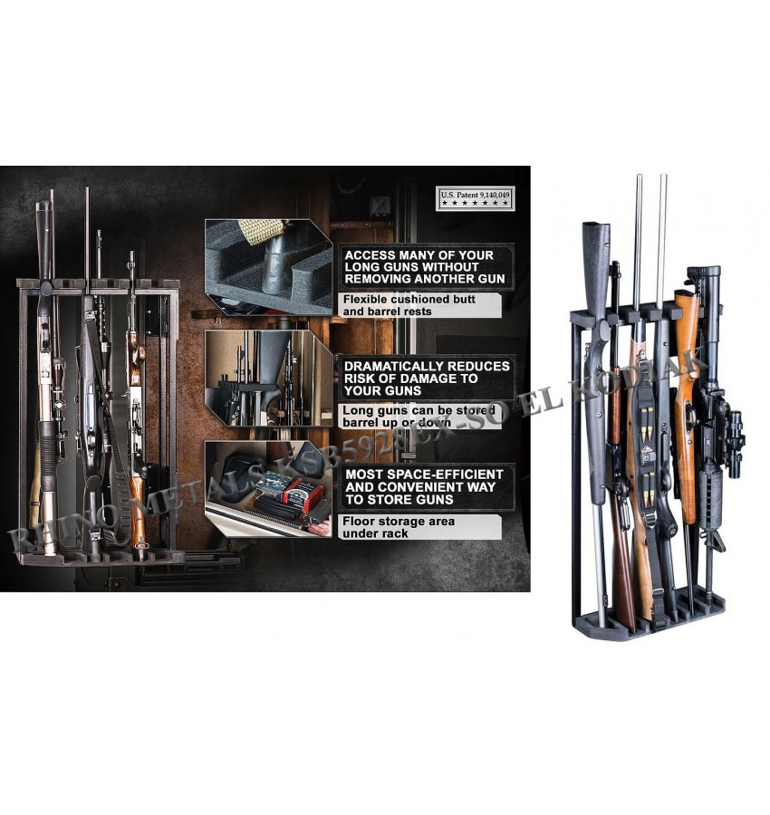 ОписаниеСейф Rhino Safe (США). Сейф - универсальный и может использоваться как в качестве оружейного сейфа, так и в качестве личного, офисного сейфа и т.п.. Современный американский сейф изготовленный в старинном дизайне. Эти сейфы хорошо сочетаются как с современными интерьерами жилых помещений и офисов, а так же с такими интерьерами, как лофт, индастриал, винтаж, кантри и т.д. Производство Rhino Safe (США). Сейфы Rhino сертифицированы на взломостойкость и огнестойкость в США. Сейфы этой серии соответствуют или превосходят требования стандарта Департамента Юстиции штата Калифорния, предъявляемые к оружейным сейфам. Полностью удовлетворяют требованиям МВД РФ к хранению оружия. Замок Сейф оборудован высокосекретным электронным кодовым замком SecuRam (США). Замок сертифицирован Underwriters Laboratories Inc (UL®) США. Защита замка – трёхслойная закаленная стальная пластина для защиты от высверливания. Имеется система relocker для блокировки замка или/и запирающего механизма при несанкционированных воздействиях на замок. Защита Усиленный корпус. Дополнительное усиление фасада корпуса специальными приварными накладками. Дверь усиленная коробчатой конструкции. Дополнительное усиление двери приварными стальными пластинами. Крупные заклёпки на двери и на корпусе имеют не только декоративную, но и дополнительную защитную функцию. Дверь сейфа оборудована мощной запирающей системой типа F-15 (запатентована). Специальная внутреняя муфта скольжения для защиты замка при приложении крутящего мышечного усилия при попытке взлома. Восемь ригелей (из них 5 активных) диаметром 25мм. Увеличенный выход ригелей по сравнению с традиционными запирающими механизмами. Межстеночное пространство сейфа имеет многослойный огнестойкий наполнитель. Fire Rating 1400°F (огнестойкость при температуре в испытательной печи 760°C, заданный предел огнестойкости 177°C) – 1H. Для дополнительной защиты от проникновения при пожаре раскалённых газов и дыма внутрь сейфа – предусмотрен уплотнительный контур между дверью и корпусом сейфа. Эти уплотнительные прокладки выполнены из специального термостойкого материала и расширяются при пожаре (до 7 раз), обеспечивая дополнительную герметичность. Внутреннее устройство Внутри сейфа есть вертикальная перегородка, которая делит внутреннее пространство сейфа на две области. Внутри "широкой" области съёмные, регулируемые по высоте ложементы и три съемные полки с регулируемой высотой установки. Так же в "широкой" области имеется удобный выдвижной лафет, обеспечивающий комфортный доступ к оружию. На лафет ружья можно устанавливать не только прикладом вниз, но и прикладом вверх. Пространство под лафетом можно использовать для хранения коробок с патронами и т.п. Внутри "узкой" области – 4 съемные полки с регулируемой высотой установки и съемный ложемент с регулируемой высотой установки. Шаг перестановки всех полок и ложементов - 13мм. Внутренний интерьер легко перенастроить: для хранения оружия либо для хранения иных предметов и ценностей и т.п.. На некоторых фотографиях показаны не все внутренние элементы, имеющиеся в комплекте этого сейфа. Внутренняя поверхность корпуса, а также внутренние элементы имеют мягкую отделку. Внутренняя поверхность двери сейфа имеет держатели для пистолетов, карманы, держатели для ножей и т.п., удобные закрывающиеся сумки. В с