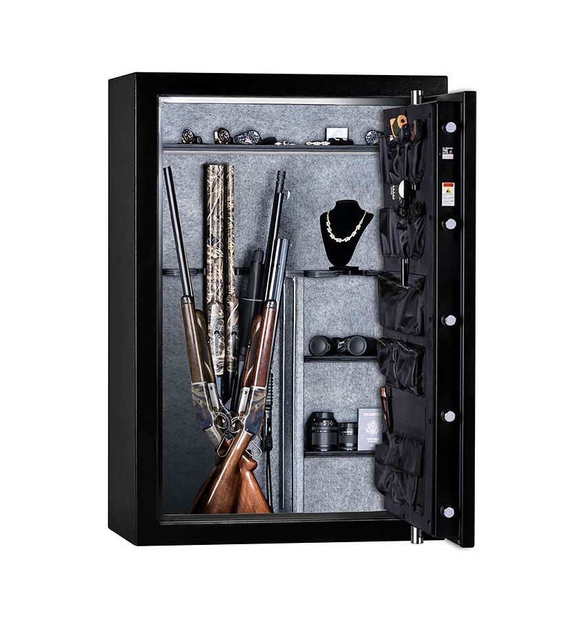 ОписаниеПроизводство Rhino Safe (США). Тактическая серия сейфов Rhino. Сейфы Rhino сертифицированы на взломостойкость и огнестойкость в США. Сейфы этой серии соответствуют или превосходят требования стандарта Департамента Юстиции штата Калифорния, предъявляемые к оружейным сейфам. Полностью удовлетворяют требованиям МВД РФ и Росгвардии к хранению оружия. Замок Сейф оборудован высокосекретным электронным кодовым замком SecuRam (США) либо La Gard (США). Замок сертифицирован Underwriters Laboratories Inc (UL) США. Защита замка – трёхслойная закаленная стальная пластина для защиты от высверливания. Имеется система relocker для блокировки замка или/и запирающего механизма при несанкционированных воздействиях на замок. Защита Усиленный корпус. Дверь усиленная коробчатой конструкции. Дверь сейфа оборудована мощной четырёхсторонней запирающей системой типа F-15 (запатентована). Специальная внутреняя муфта скольжения для защиты замка при приложении крутящего мышечного усилия при попытке взлома. Двенадцать ригелей, (из них семь активных) диаметром 32мм. Увеличенный выход ригелей по сравнению с традиционными запирающими механизмами. Межстеночное пространство сейфа имеет многослойный огнестойкий наполнитель. Fire Rating 1400F (огнестойкость при температуре в испытательной печи 760C, заданный предел огнестойкости 177C) – 1H. Для дополнительной защиты от проникновения при пожаре раскалённых газов и дыма внутрь сейфа – предусмотрен уплотнительный контур между дверью и корпусом сейфа. Эти уплотнительные прокладки выполнены из специального термостойкого материала и расширяются при пожаре (до 7 раз), обеспечивая дополнительную герметичность. Внутреннее устройство Сейф очень вместительный, позволяет хранить большое количество единиц оружия, боеприпасов, документов и различных ценностей. Сейф универсальный с легко перестраиваемым внутренним интерьером. Его можно использовать не только для хранения оружия, но и для хранения документов, денег и других ценностей. Внутри сейфа вертикальная перегородка, различные полки и оружейные ложементы. Все полки - съёмные с регулируемой высотой установки. Внутренняя поверхность корпуса, а также внутренние элементы имеют мягкую отделку. Внутренняя поверхность двери сейфа имеет держатели для пистолетов, карманы, держатели для ножей и т.п., удобные закрывающиеся сумки. В сейфе ружья можно хранить как по одну сторону от перегородки, так и по обе стороны от перегородки. Установка Конструкцией сейфа предусмотрена возможность его крепления к полу. Дополнительная информация Дверь сейфа открывается полностью на 180°, что обеспечивает более удобный доступ к хранимым в сейфе предметам. Имеются несколько серий сейфов Rhino, отличающихся огнестойкостью и взломостойкостью. В порядке увеличения взломостойкости эти серии располагаются так: Kodiak® KB SERIES, Longhorn®, Kodiak® K SERIES, Kodiak® KSB SERIES, Ironworks® CIWD Premium, Ironworks® AIW Supreme. ДоставкаСтоимость доставки по Москве в пределах МКАД: при заказе от 20 000 рублей бесплатно, менее 20000 руб - 1200 рублей Доставка возможна на 14.12.2025 или на 15.12.2025 Доставка по РФ и СНГ: по тарифам транспортных компаний Стоимость разгрузки: 3525 руб СамовывозСамовывоз: со склада, после после подтверждения заказа ОплатаОплата: наличными при получении товара, безналичный расчет ( 100% предоплата) Сейф Rhino Metals KTF5940EX BT EL Kodiak® |