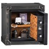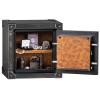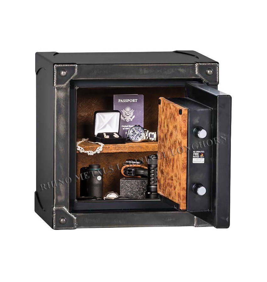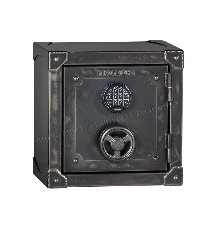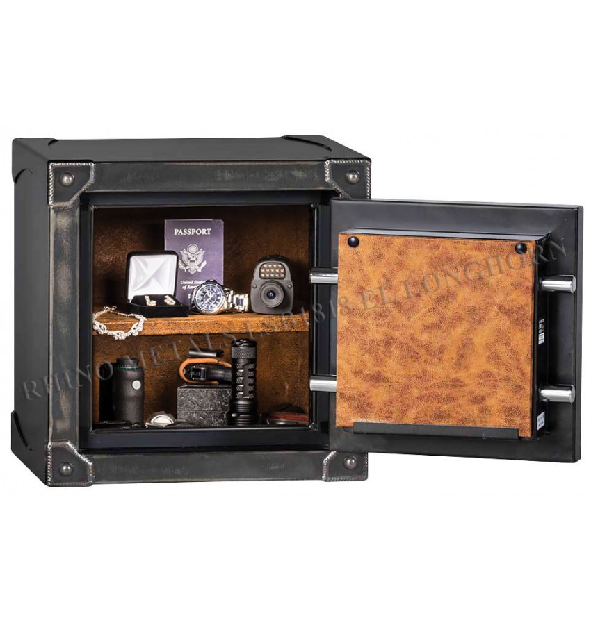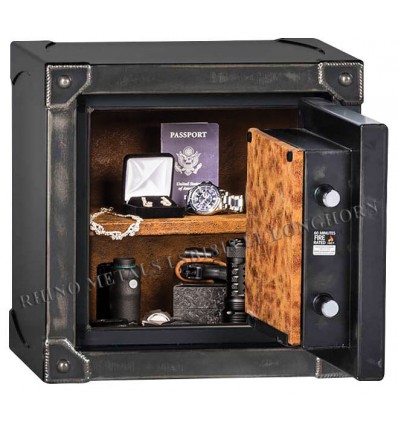 Современный американский сейф, изготовленный в старинном дизайне. Эти сейфы хорошо сочетаются как с современными интерьерами жилых помещений и офисов, а так же с такими интерьерами, как лофт, индастриал, винтаж, кантри и т.д. Производство Rhino Safe (США). Сейфы Rhino сертифицированы на взломостойкость и огнестойкость в США. Одобрен в штате Калифорния как сейф для хранения огнестрельного оружия (соответствует разделу 23655 кодекса и нормативным актам штата). Полностью удовлетворяют требованиям МВД РФ. Замок Сейф оборудован высокосекретным электронным кодовым замком SecuRam (США). Замок сертифицирован Underwriters Laboratories Inc (UL®) США. Защита замка специальной стальной пластиной. Защита Усиленный корпус. Дополнительное усиление угловых граней корпуса специальными приварными накладками. Дверь усиленная коробчатой конструкции. Дополнительное усиление двери стальной пластиной, для увеличения защиты от вскрытия рычагом. Крупные заклёпки на двери и на корпусе имеют не только декоративную, но и дополнительную защитную функцию. Дверь сейфа оборудована мощной двухсторонней ригельной запирающей системой с увеличенной защитой от сверления и ударных воздействий. Четыре ригеля (из них 2 активных) диаметром 25мм. Увеличенный выход ригелей по сравнению с традиционными запирающими механизмами. Сейфы имеют многослойный огнестойкий наполнитель. Fire Rating 1400°F (огнестойкость при температуре в испытательной печи 760°C, заданный предел огнестойкости 177°C) – 1H. Для дополнительной защиты от проникновения при пожаре раскалённых газов и дыма внутрь сейфа – предусмотрен уплотнительный контур между дверью и корпусом сейфа. Эти уплотнительные прокладки выполнены из специального термостойкого материала и расширяются при пожаре, обеспечивая дополнительную герметичность. Внутреннее устройство Внутри сейфа съёмная полка с регулируемой высотой установки. Шаг перестановки 13мм. Внутренняя поверхность двери, полка и вся внутренняя поверхность сейфа имеет мягкую отделку. Полная внутренняя мягкая отделка защищает хранимые в сейфе предметы от контакта с металлом, царапин повреждений и т.п. Для внутренней отделки используется современная экозамша с эффектом потёртой буйволиной кожи. Установка Конструкцией сейфа предусмотрена возможность его крепления к полу. Дополнительная информация Дизайн этих современных американских сейфов выполнен в стиле сейфов второй половины 19 века. Потёртости покрытия и внутренней отделки не являются дефектом или браком, а являются элементами дизайна сейфов Rhino Longhorn®. Дизайн этих сейфов запатентован в США. Дверь сейфа открывается полностью на 180°, что обеспечивает более удобный доступ к хранимым в сейфе предметам. Имеются несколько серий сейфов Rhino, отличающихся огнестойкостью и взломостойкостью. В порядке увеличения взломостойкости эти серии располагаются так: Kodiak® KB SERIES, Longhorn®, Kodiak® K SERIES, Kodiak® KSB SERIES, Ironworks® CIWD Premium, Ironworks® AIW Supreme.