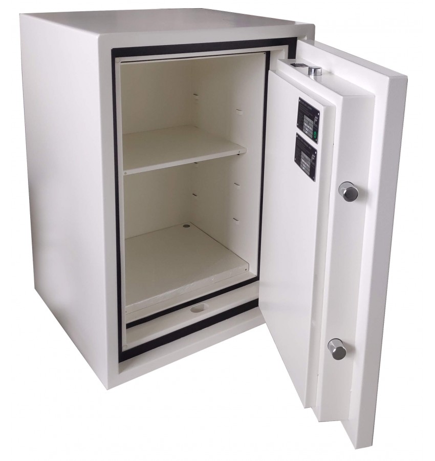 Сейф с европейской сертификацией FSB 670 с защитой от пожара и взлома - замечательный вариант как для дома, так и для офиса. Приятный внешний вид, отличные защитные свойства делают сейф не просто защитником документов и ценностей, но и частью интерьера. В размерах сейфа стоит учесть, что петли выступают, увеличивая глубину сейфа на 30 мм. Сейф имеет европейскую сертификацию ESB-c взломостойкости и огнестойкости 60 минут. Качественное, износоустойчивое и безопасное полимерное покрытие сейфа. В сейфе предусмотрены два отверстия для крепления к полу. Замок сейфа работает от батареек. Отсек для батареек находится внутри сейфа. В случае, если батарейки сядут, на клавиатуре есть специальный разъем для аварийной подзарядки другой батарейкой(крона). FSB670 оснащен четырехсторонней ригельной системой запирания, где в три стороны уходят активные ригеля и в одну сторону пассивный. Усиленный двойной огнестойкий контур, перекроет доступ к внутреннему содержимому в случае пожара и ваши бумаги будут защищены на протяжении 60 минут. Анкерные болты в комплекте. Дверь сейфа открывается более 200 градусов.