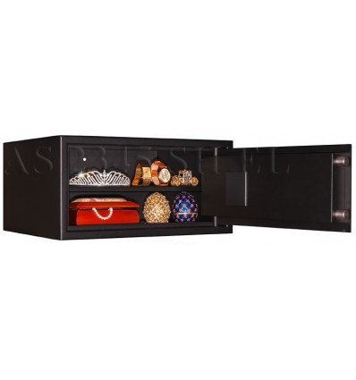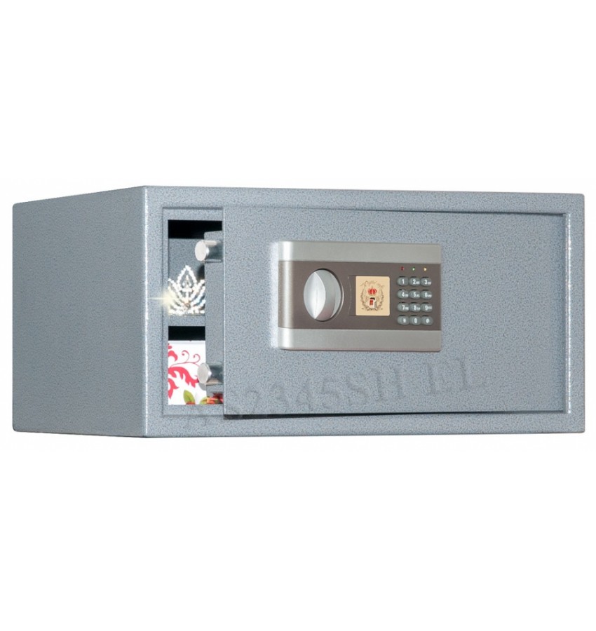 Имеются различные цвета. Используется в качестве мебельного, настольного, пистолетного сейфа и т.п. Удовлетворяет требованиям МВД. Сейф имеет гигиенически безопасное, износо- и коррозионно-устойчивое полимерно-порошковое покрытие. Замок Сейф оборудован электронным кодовым замком. Питание замка от стандартных батареек. Долгий срок службы батареек. Простая и удобная замена разряженных батареек. Длину кодовой комбинации (от трёх до восьми цифр) выбирает сам владелец сейфа. Сейф имеет систему аварийного открывания master-lock, которая позволит Владельцу сейфа открыть и перепрограммировать электронный замок, если забыт установленный код и т.п. Индивидуальные мастер-ключи входят в комплект сейфа. Электронный замок сейфа имеет светодиодную и звуковую индикацию – для ещё более удобной эксплуатации и программирования сейфа. Защита Усиленный корпус. Дверь сейфа усиленная коробчатая, петли - внутренние. Внутреннее устройство Внутри сейфа съёмная полка. Дно сейфа отделано ковролином. В сейф помещаются папки КОРОНА, ноутбук и т.п. Установка Предусмотрена возможность установки сейфа в мебель, крепления сейфа к стене, к полу, мебельной полке и т.п. Модификации Дополнительно может комплектоваться пистолетными ложементами (пластиковыми либо деревянными) а также колодками под патроны. Сейфы этой модели стандартно поставляются с различными вариантами полимерно-порошковых покрытий: эффект молотковой эмали серый (как на центральном фото), медный антик, светло-серый шагрень, а также черный дымчатый. Уточняйте при заказе - в каких цветах имеются сейфы в наличии. Ассортимент сейфов по цвету может меняться